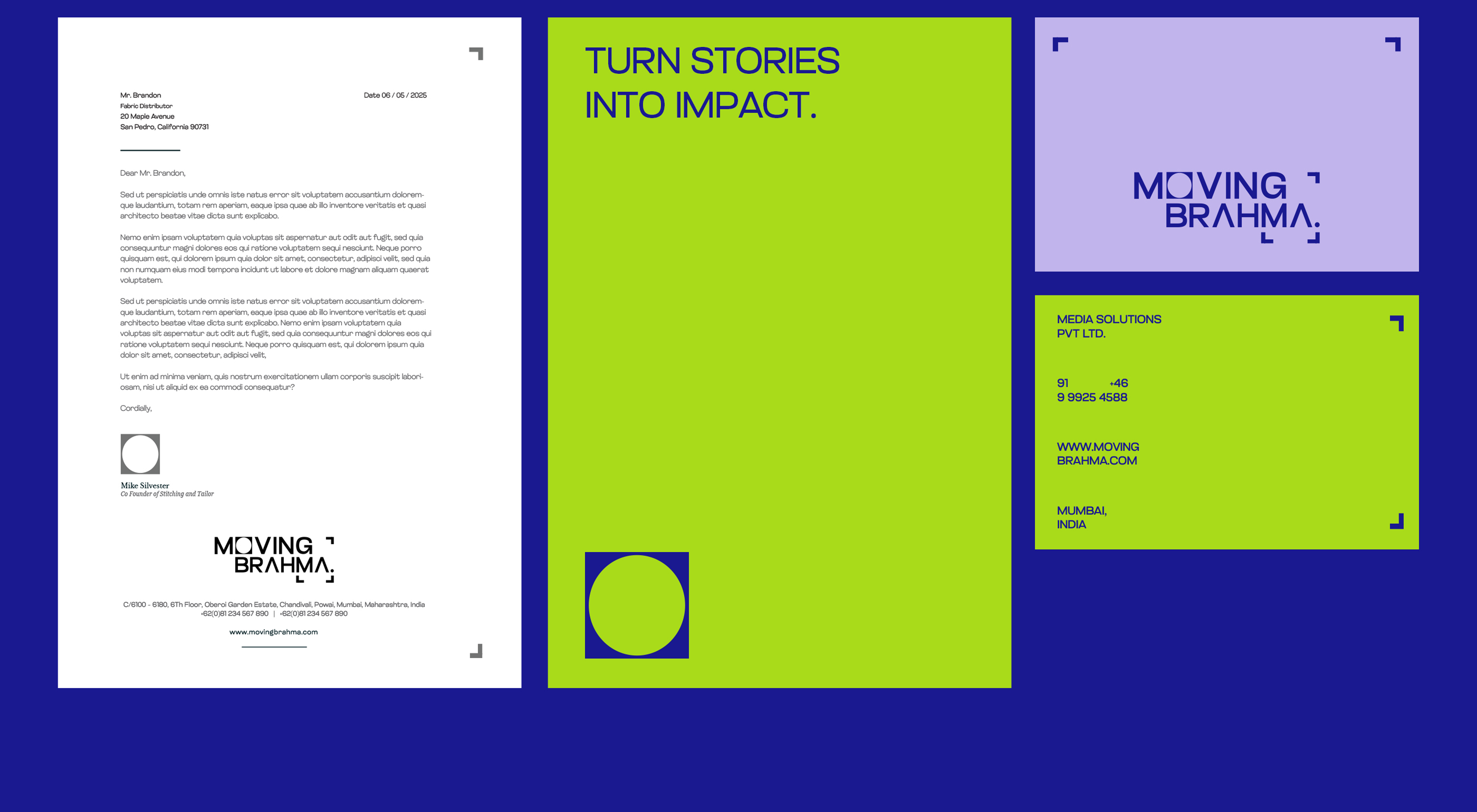 This philosophy ensures that Moving Brahma communicates with confidence, coherence, and impact — no matter where or how the brand appears.