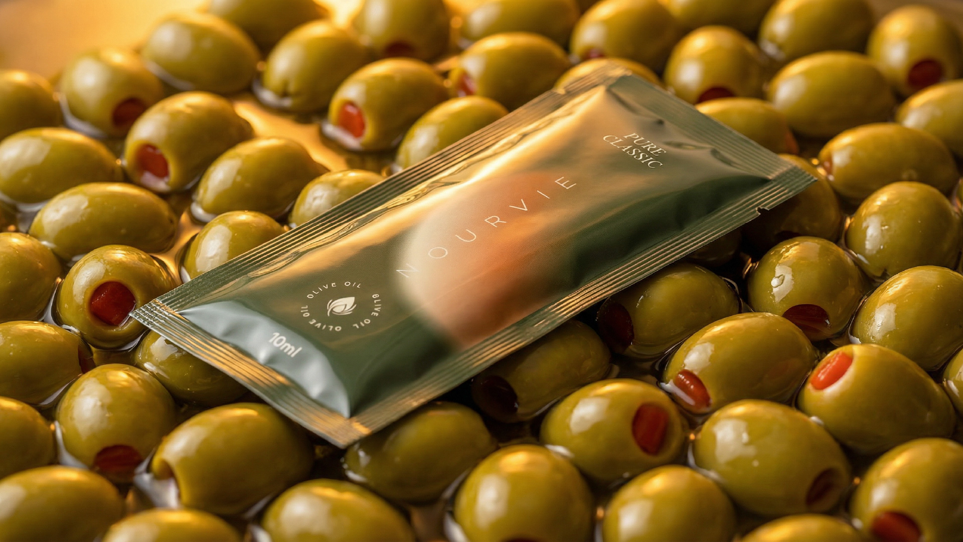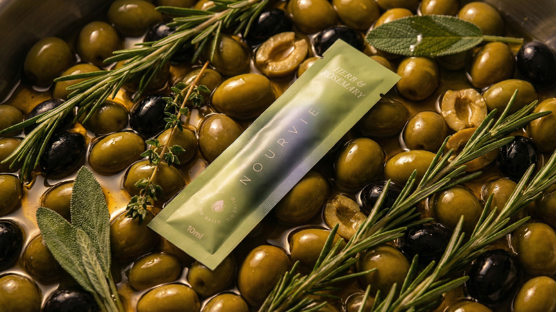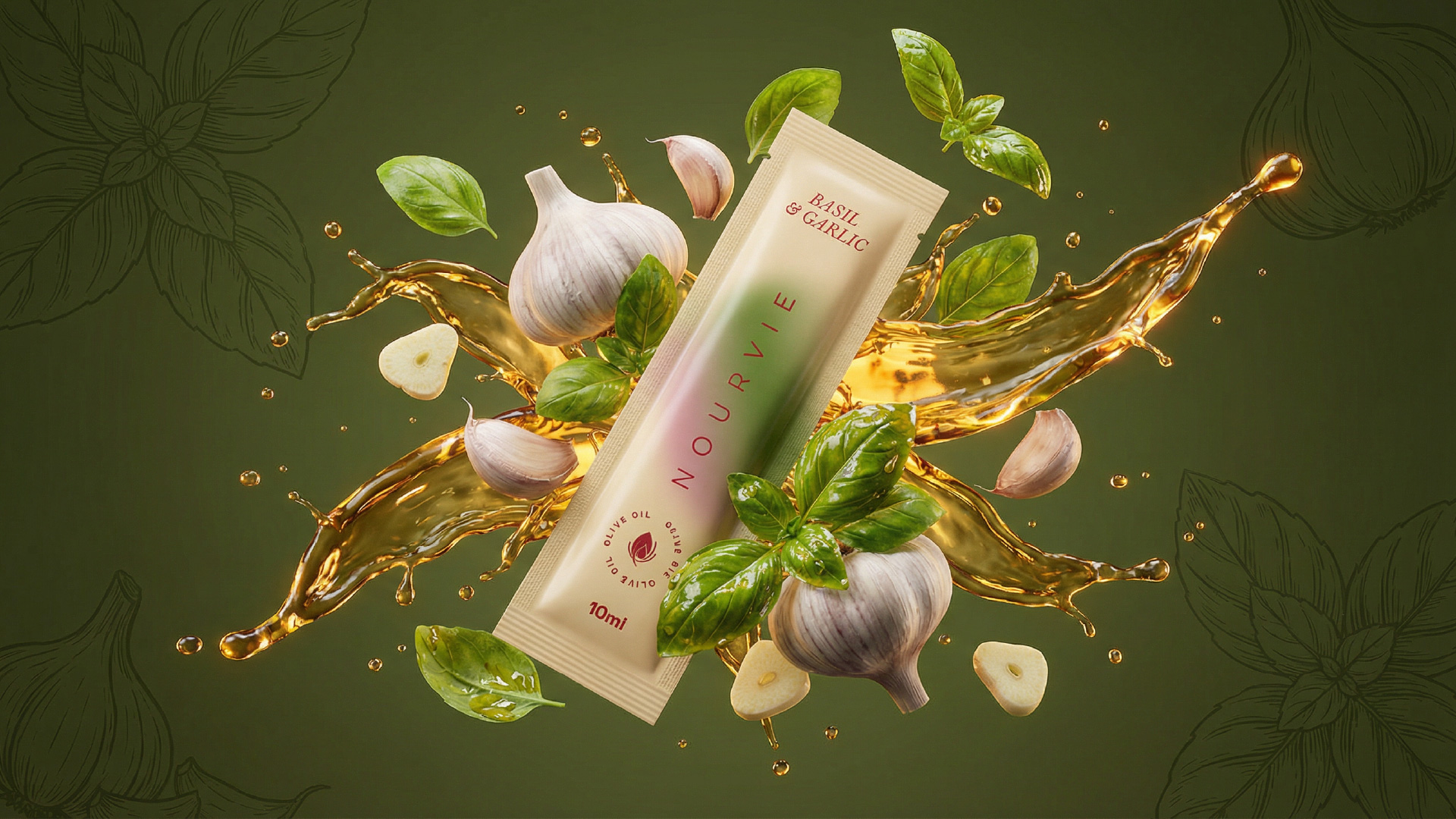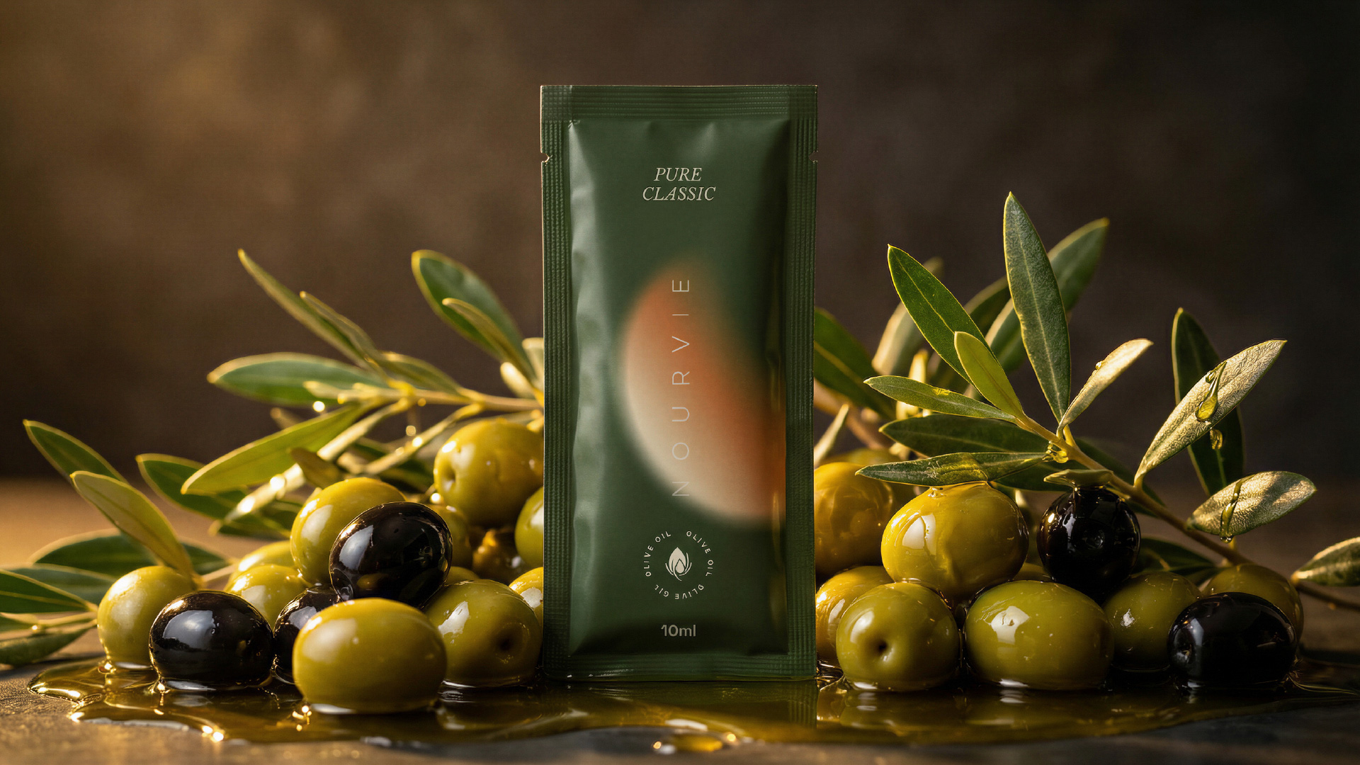 Nourvie is a premium infused olive oil brand built around a single, unconventional format: the 10ml sachet. In a category long dominated by glass bottles and ornate labels, Nourvie strips the ritual of olive oil down to its most intimate and portable form — a single-use, single-serving vessel designed for the modern gourmet. The challenge was to make something so small feel unmistakably luxurious.