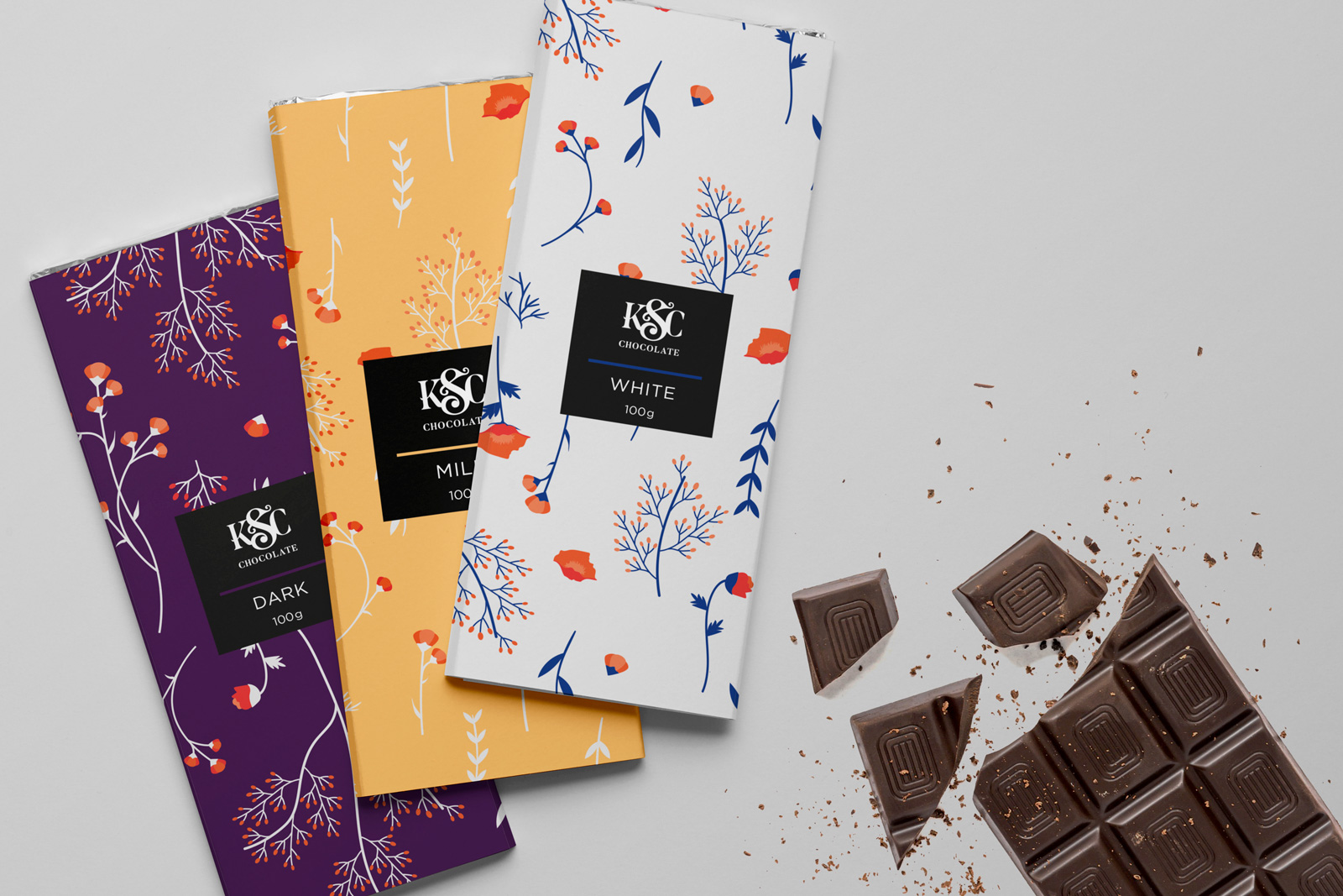 - Keywords: chocolate, pattern, flowers, packaging design, chocolate bar