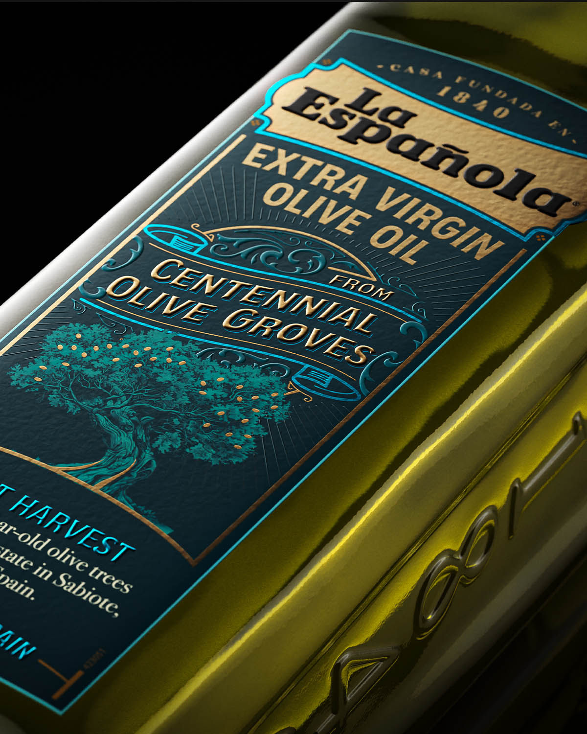 The result is a cohesive brand experience that elevates the perception of La Española’s Centennial Olive Groves line. Through a combination of groundbreaking color, sophisticated textures, and highly crafted finishes, the packaging conveys both the aromatic intensity and balanced smoothness of the EVOO. More than a visual statement, it embodies the authenticity and excellence that define La Española’s enduring legacy.