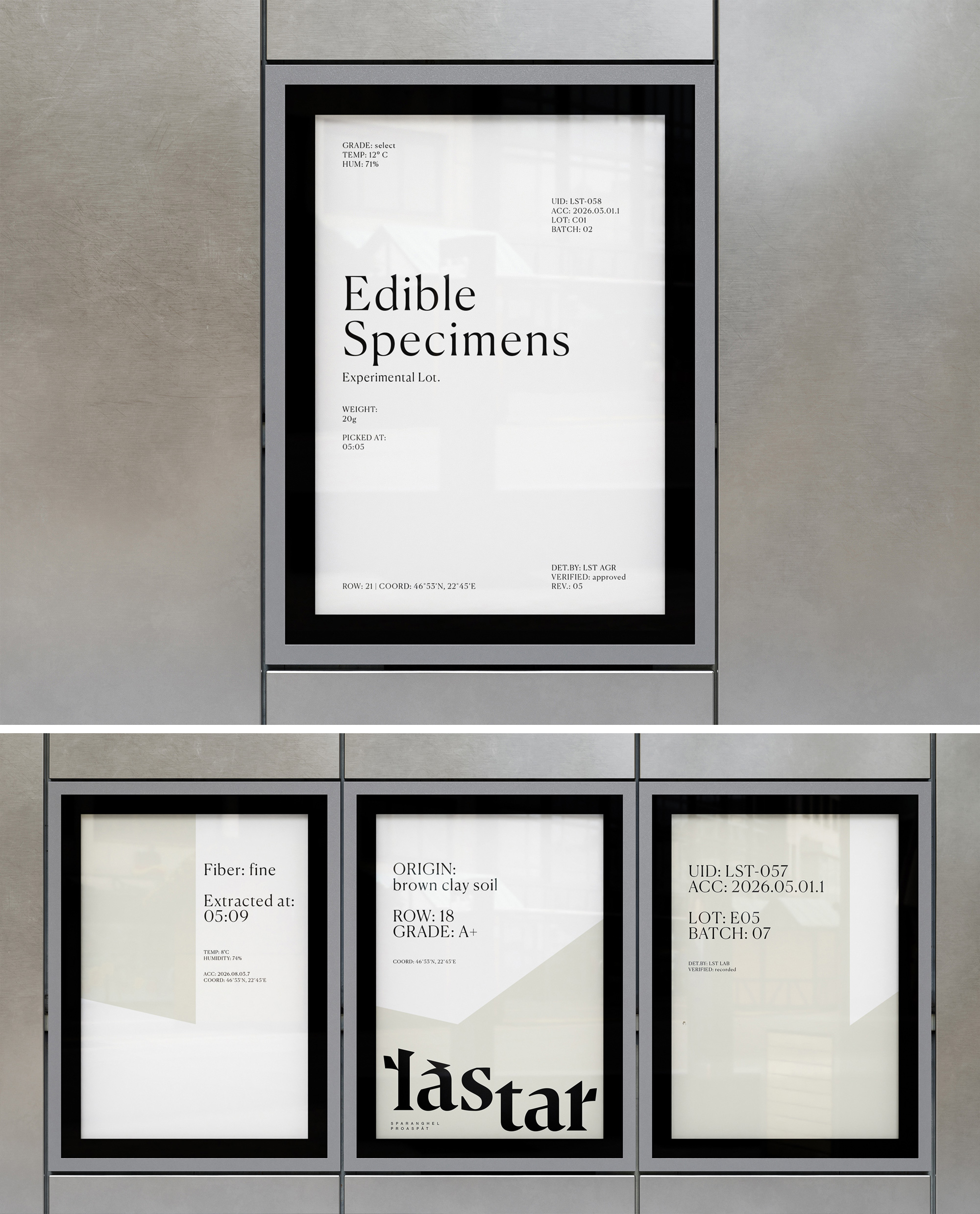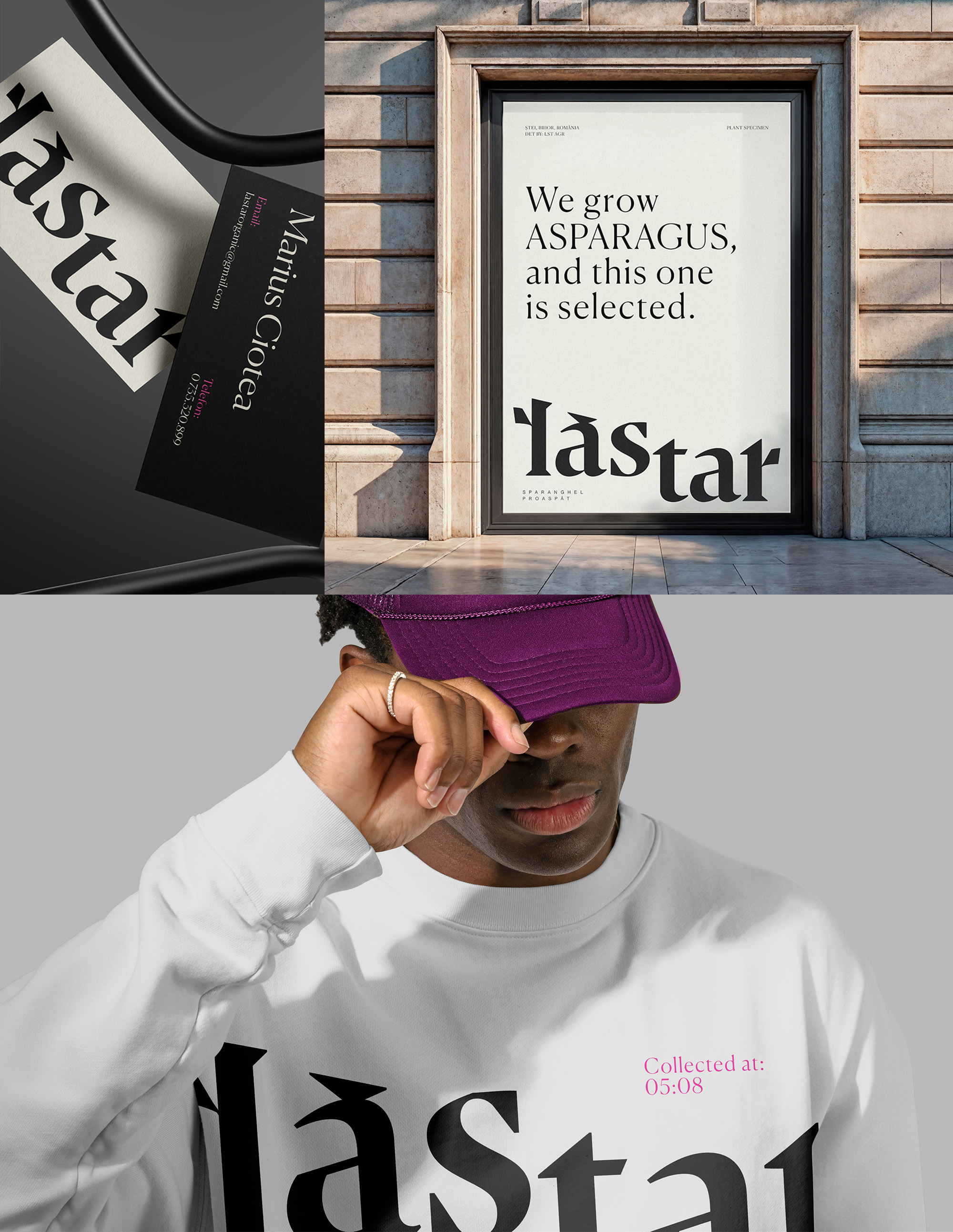 Lăstar introduces a visual identity system that repositions asparagus from a mass-market commodity to a catalogued agricultural specimen by replacing promotional language with recorded information. Drawing from the visual and linguistic codes of institutional archiving, the identity communicates freshness through documentation rather than persuasion.