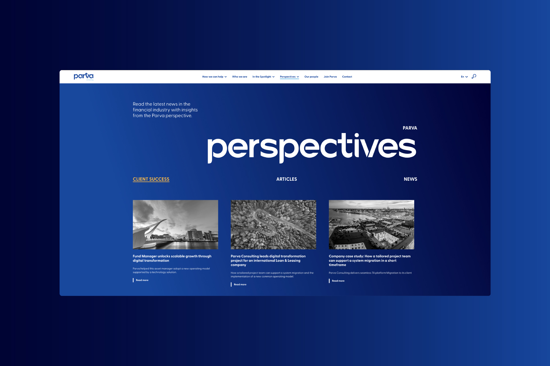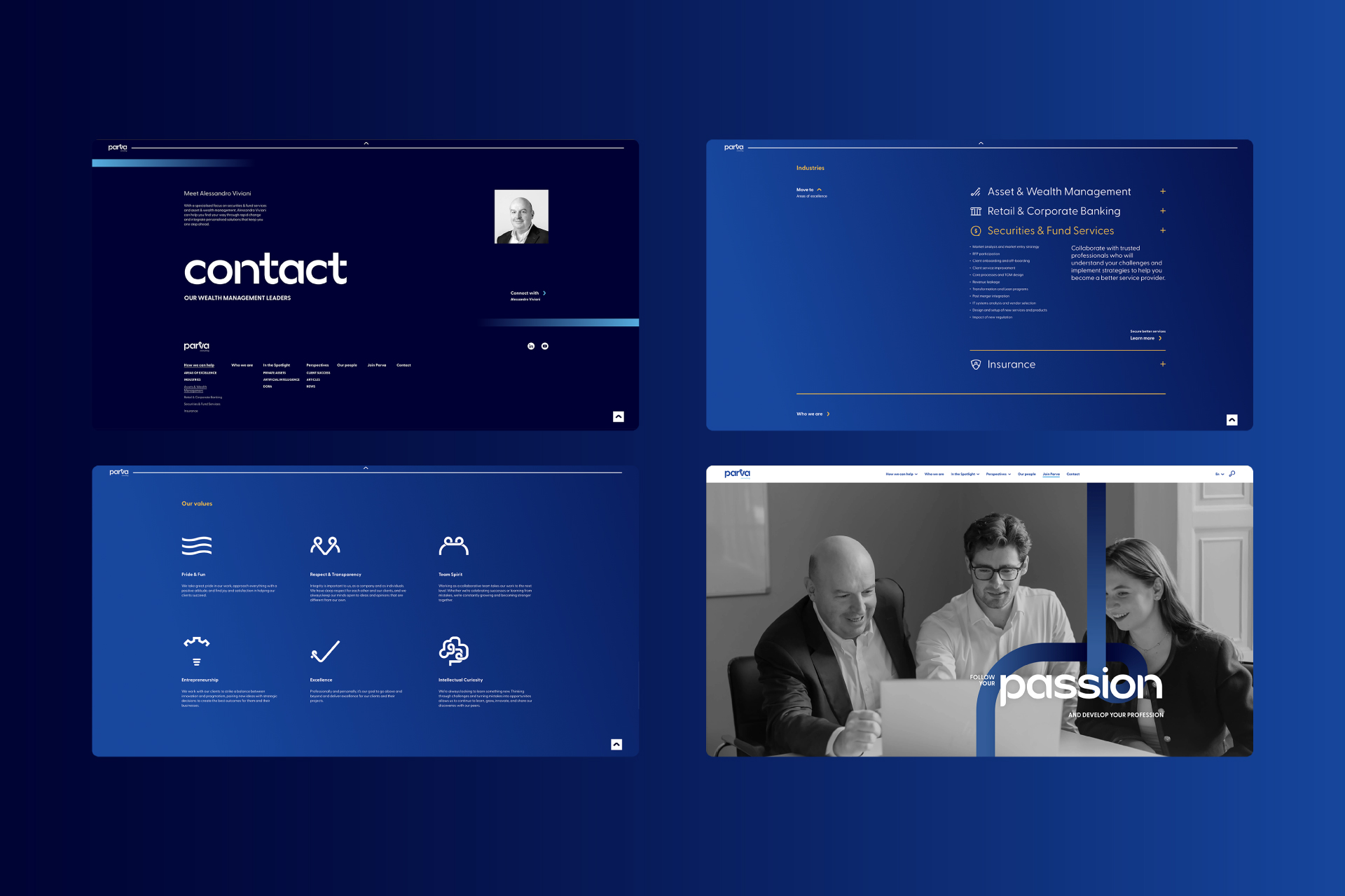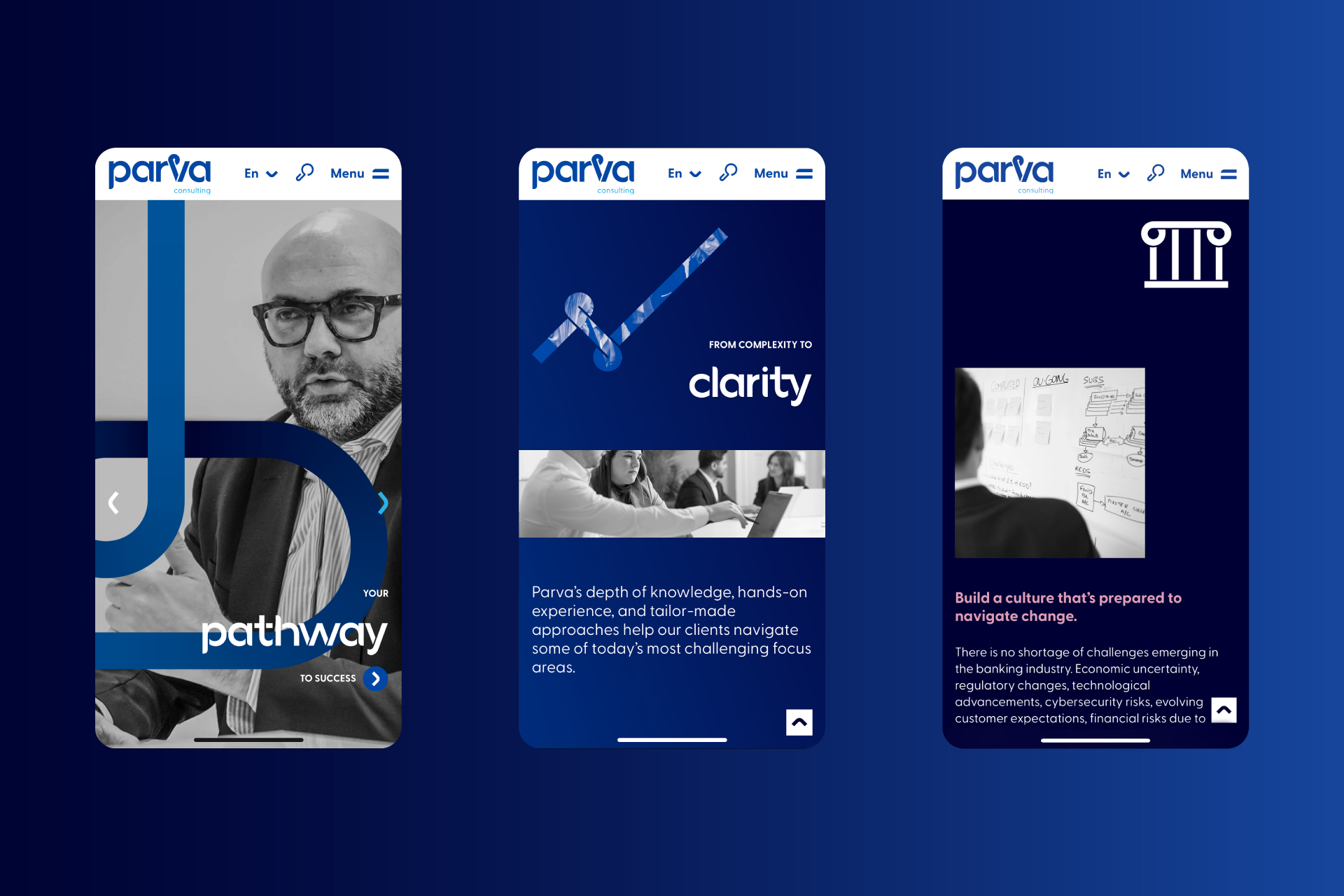 The challenge was to evolve the brand in a way that felt authentic rather than disruptive. Working closely with the Parva team, the process focused on balancing heritage with future ambition. The result is a new identity, website, and communications system that reinforces Parva’s role as a trusted advisor, supporting clients on their individual pathways to transformation.