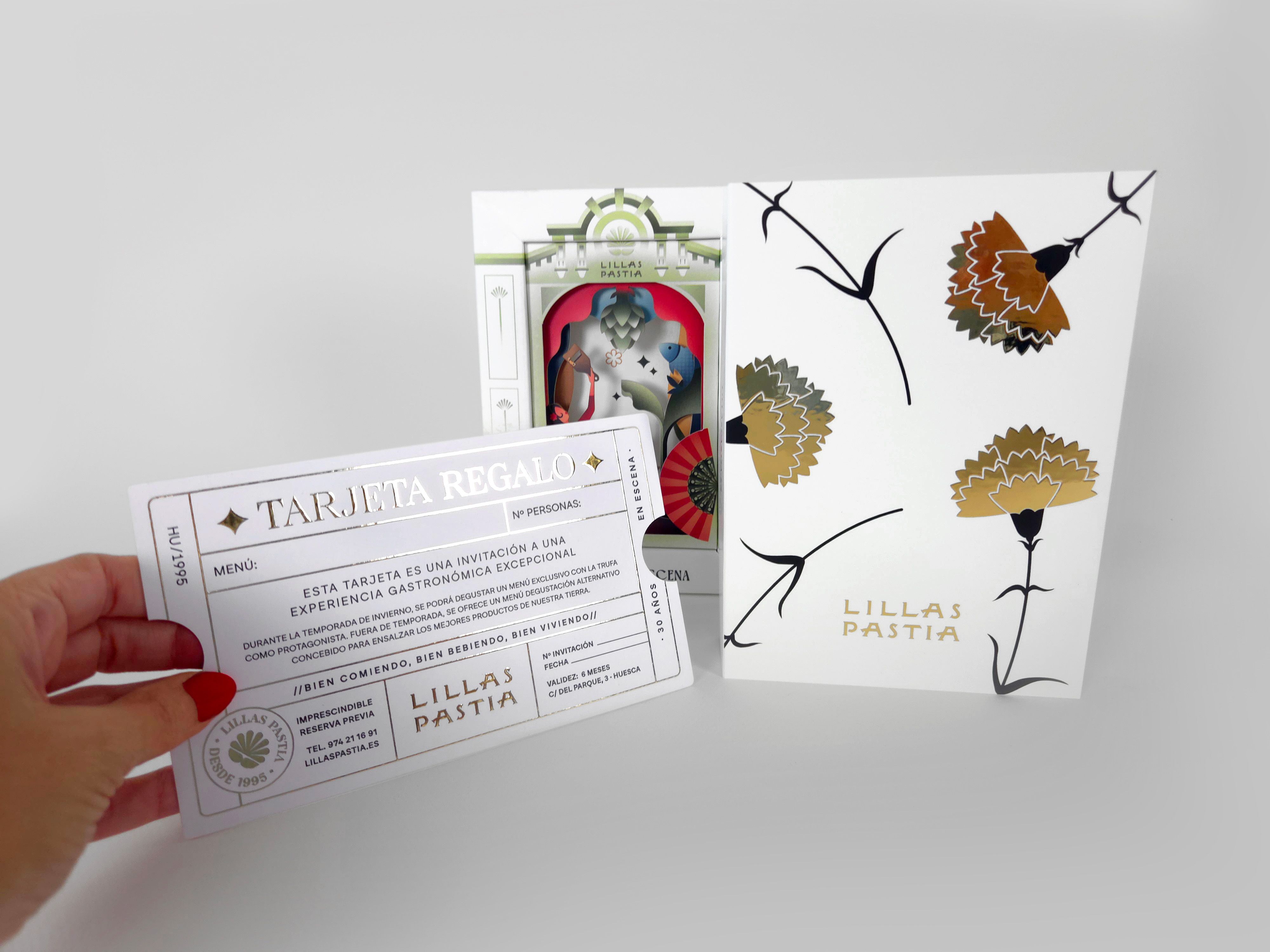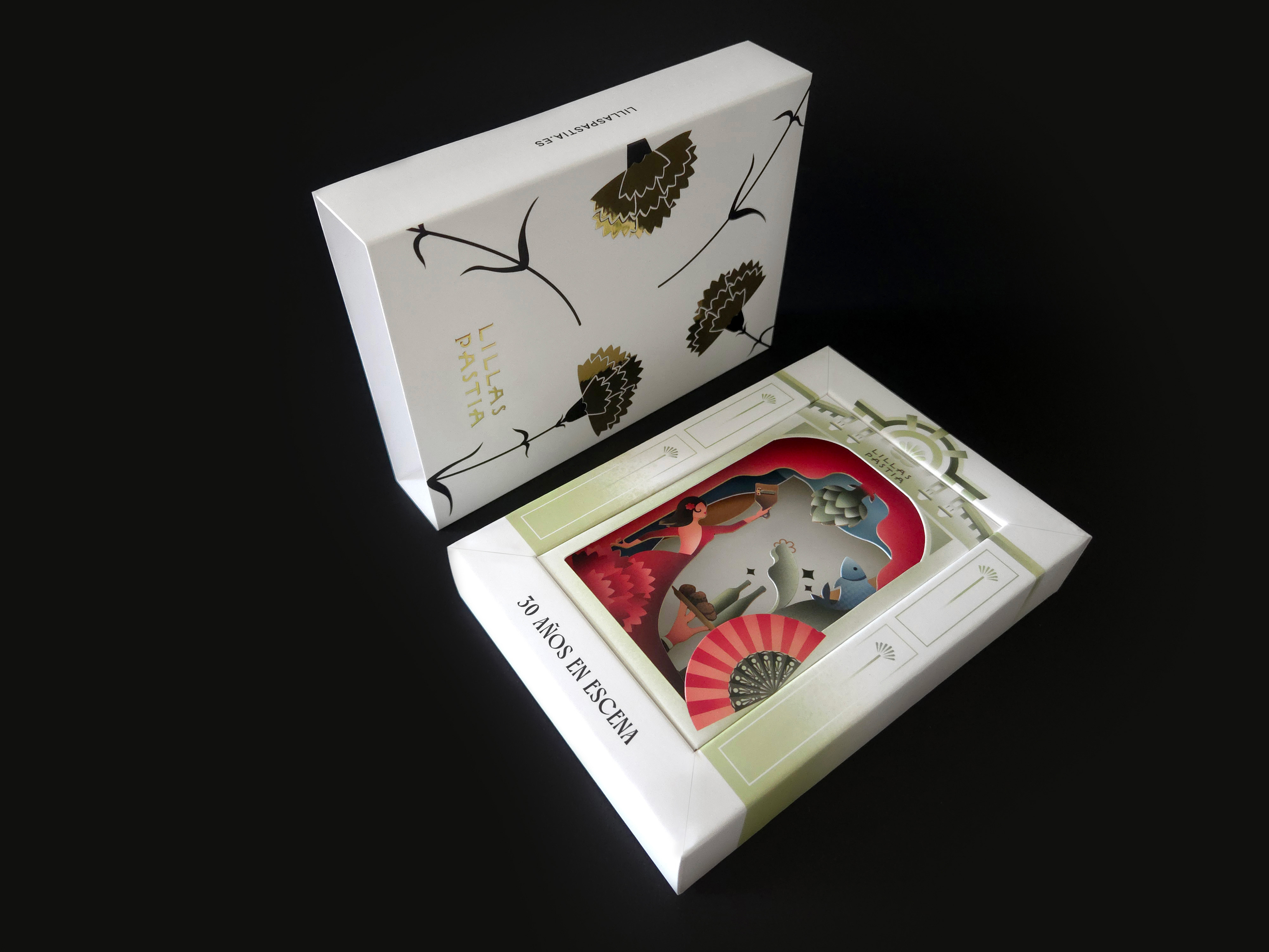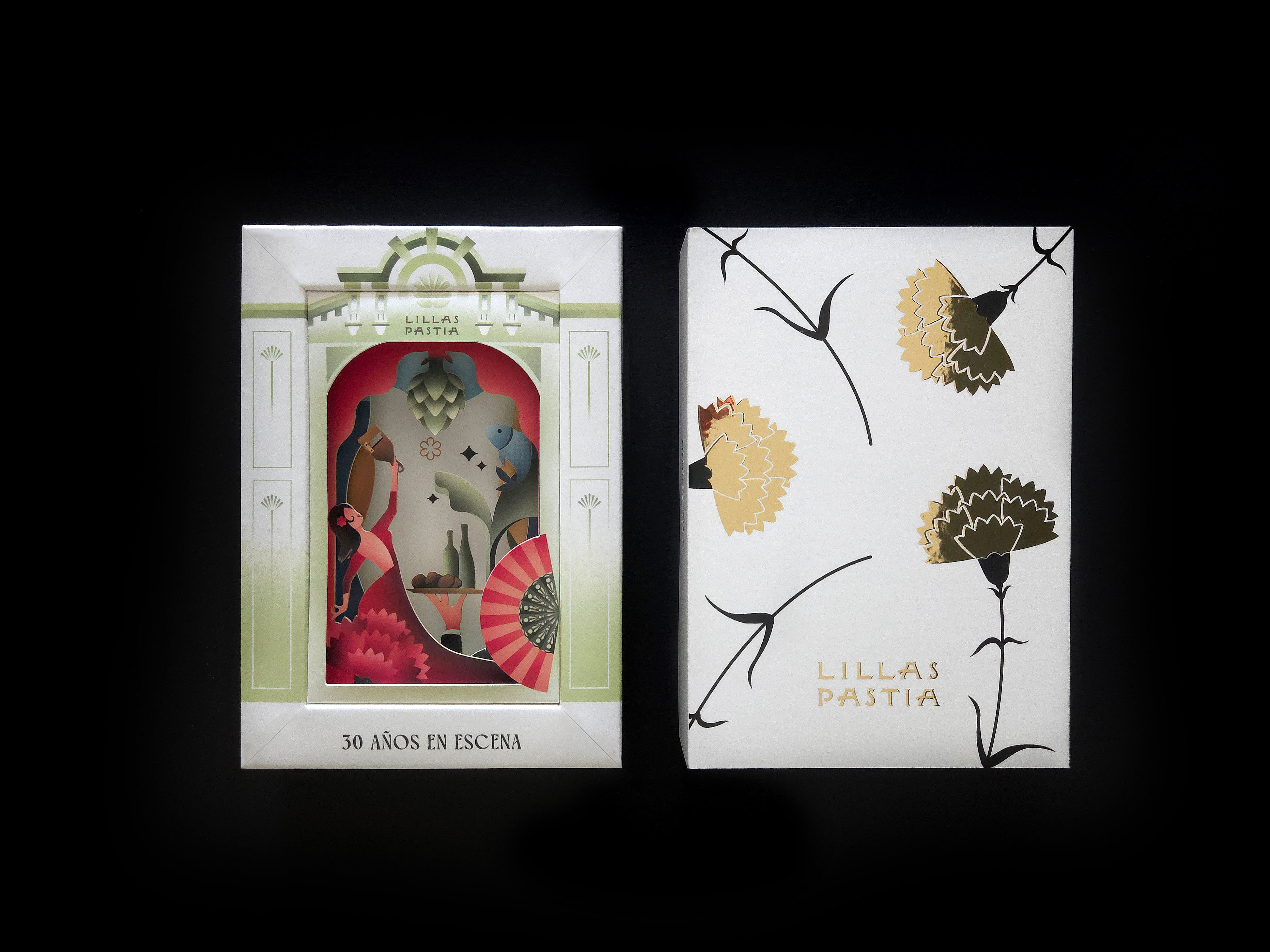 To celebrate 30 years of Lillas Pastia, we designed a gift ticket box that distils the restaurant’s identity into a small theatrical stage. More than a commemorative object, the piece acts as a narrative device that connects gastronomy, history and opera. The name of the restaurant itself comes from Lillas Pastia’s tavern, the setting of one of the most iconic scenes in Bizet’s opera Carmen, a reference that becomes the conceptual backbone of the design.
