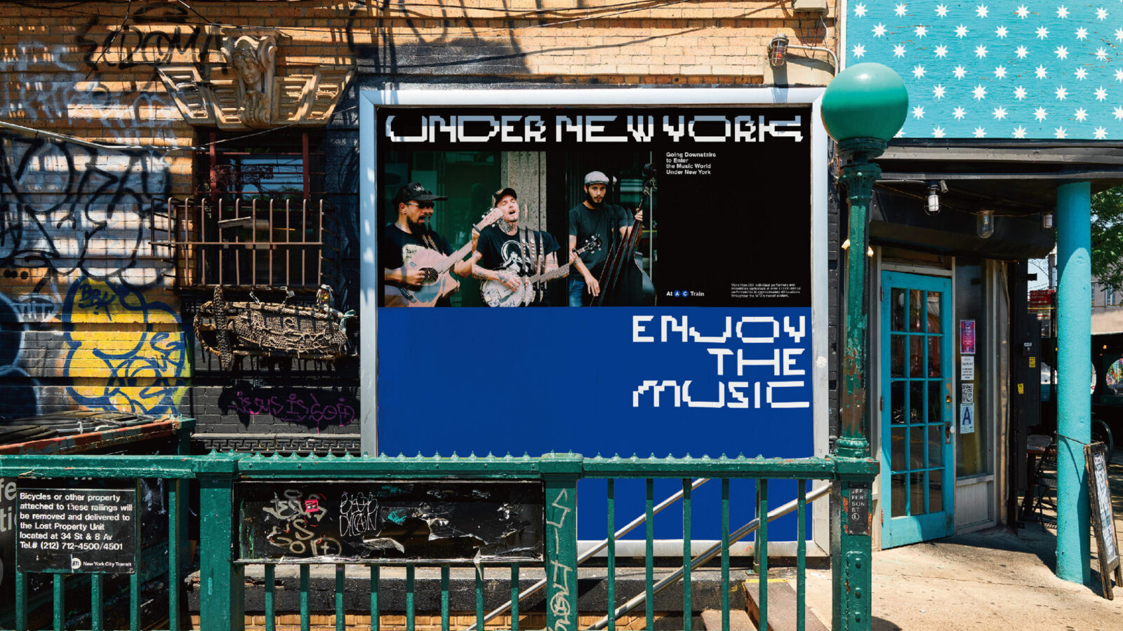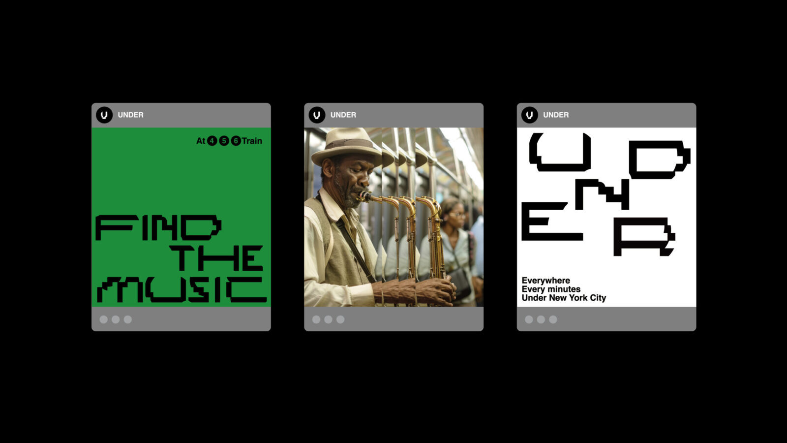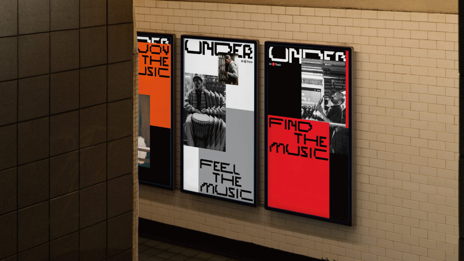 To complement the typography, the visual system incorporates the original color palette of the New York subway lines. Layered with portrait photography of real performers, these visuals emphasize diversity and individuality while reinforcing the sense of movement and sound. This approach ensures the identity feels authentic to the city and its cultural heartbeat.