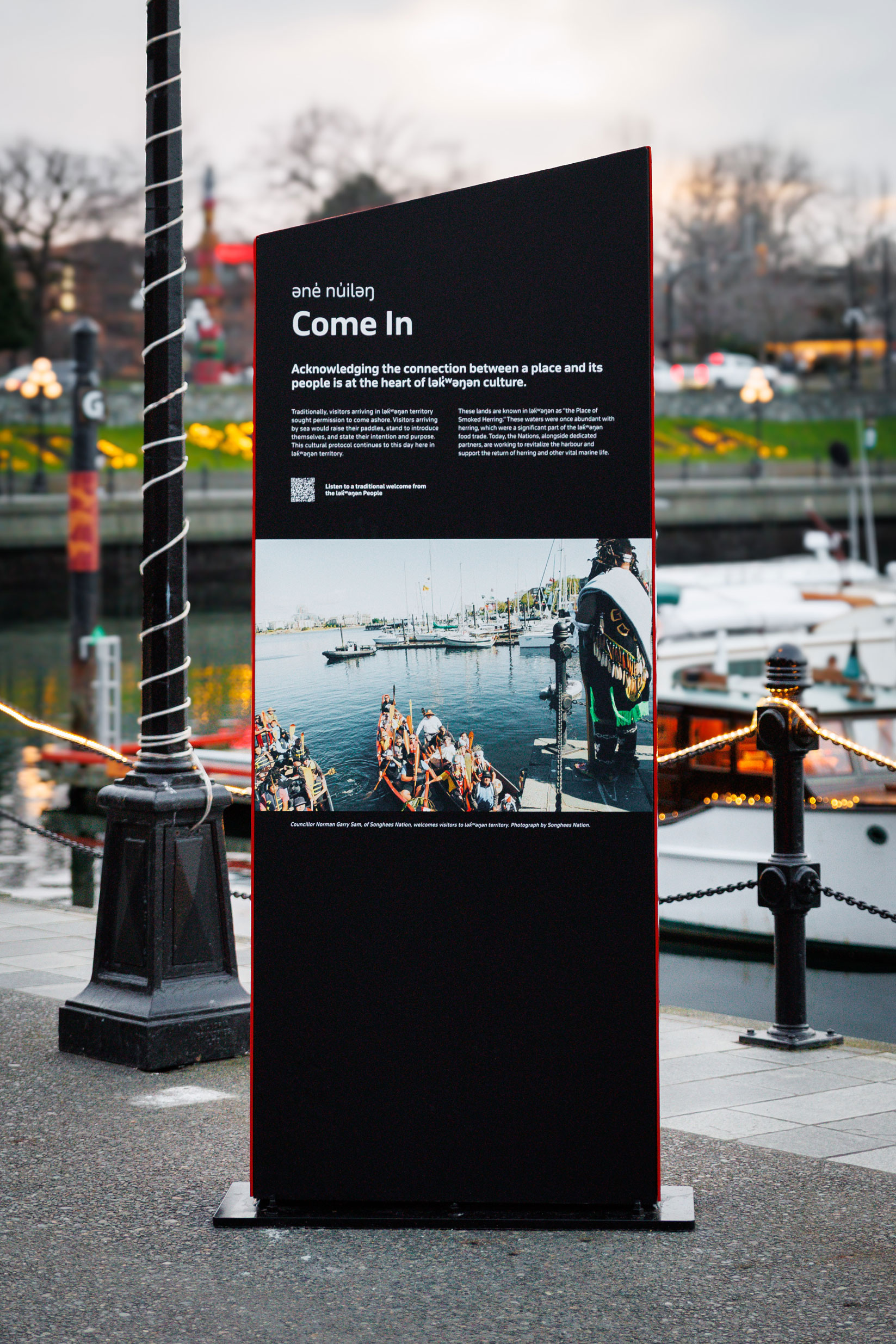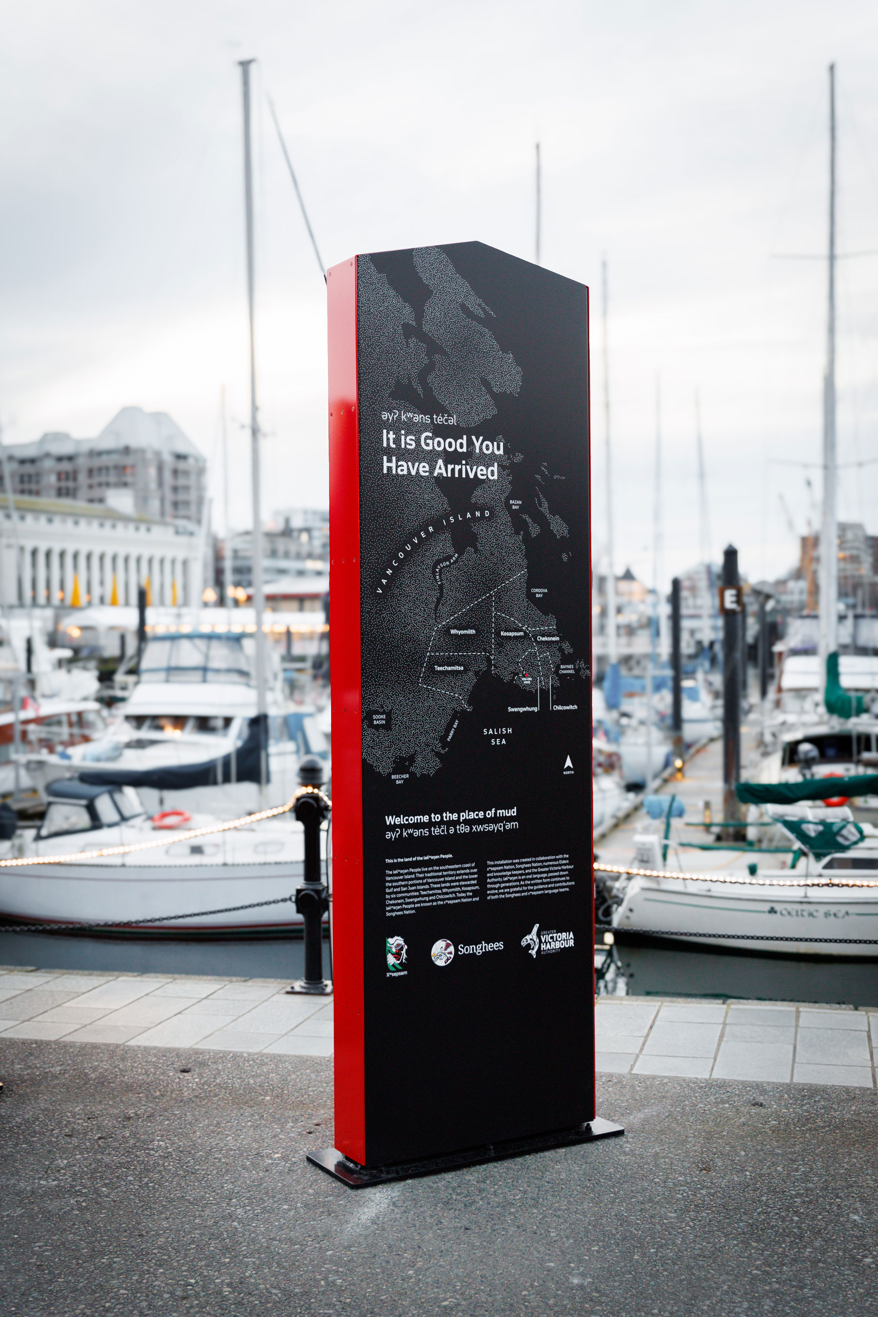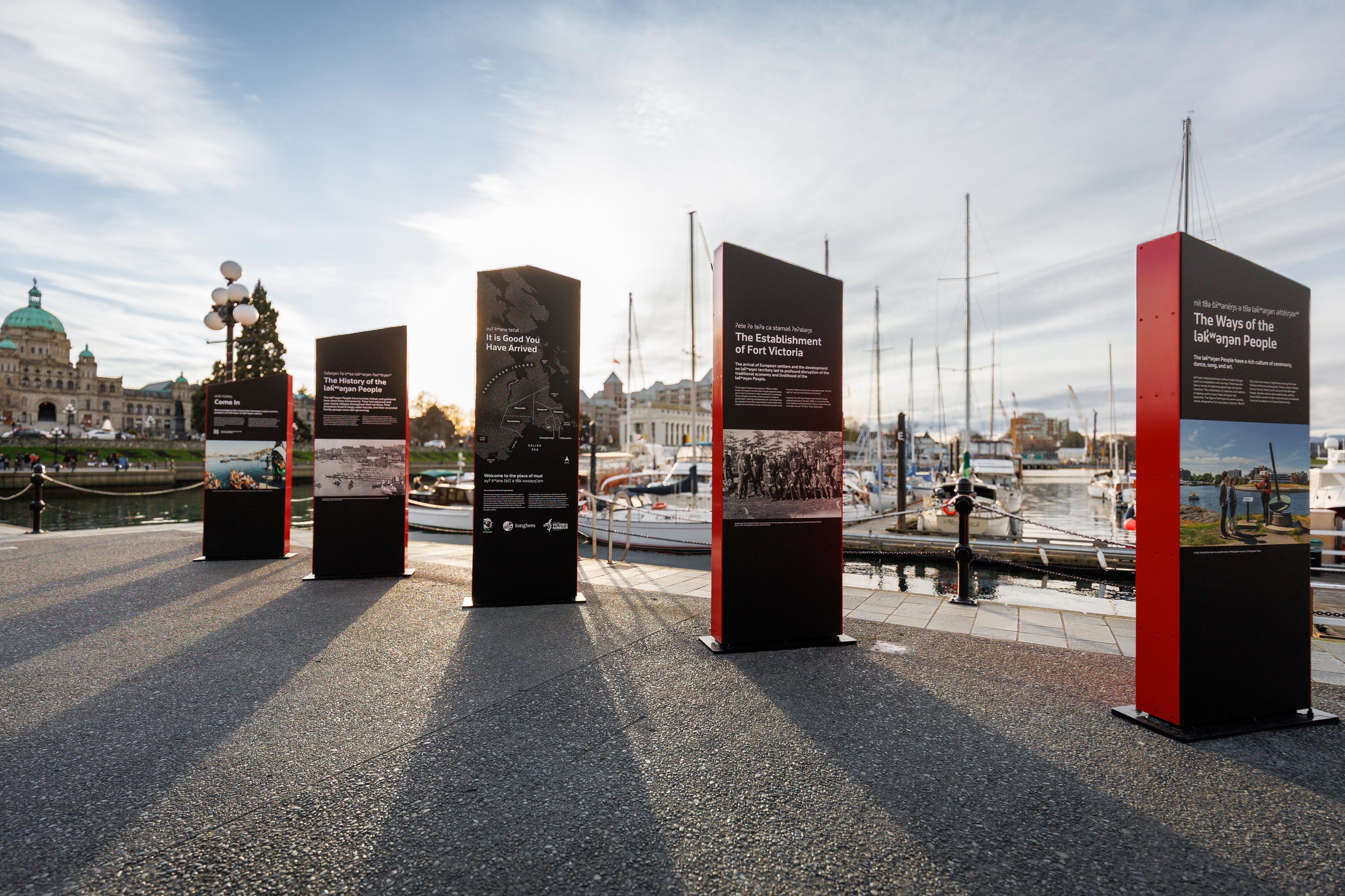 The xwsəyq’әm interpretive installation is the latest collaboration between Lost & Found Design and the Greater Victoria Harbour Authority (GVHA) in partnership with Songhees and xʷsepsəm Nations, it is part of an ongoing, community-led initiative to incorporate lək̓ʷəŋən culture, language, and history into the fabric of Victoria’s Inner Harbour.