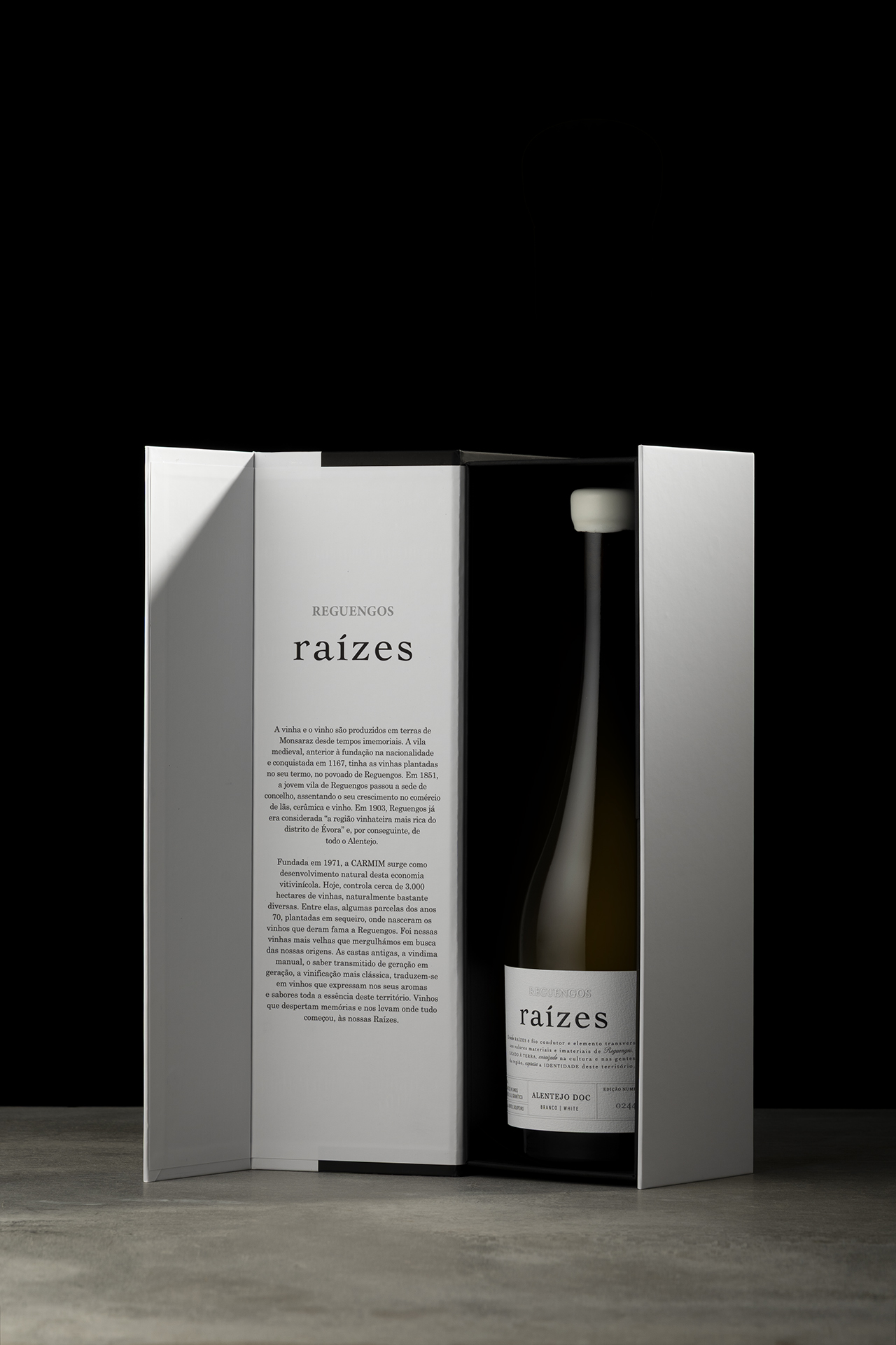 The development of RAÍZES stemmed from the challenge of translating the identity of a region marked by centuries of winemaking tradition into a contemporary expression. Rooted in Reguengos de Monsaraz, a region where wine is part of the culture, the landscape, and the collective memory, the project sought to highlight this heritage through a clear, structured, and consistent visual language. The proposal took as its starting point the idea of origin the roots that connect the land, the vineyards, and the people—reflecting the deep relationship between the territory, tradition, and the final product.