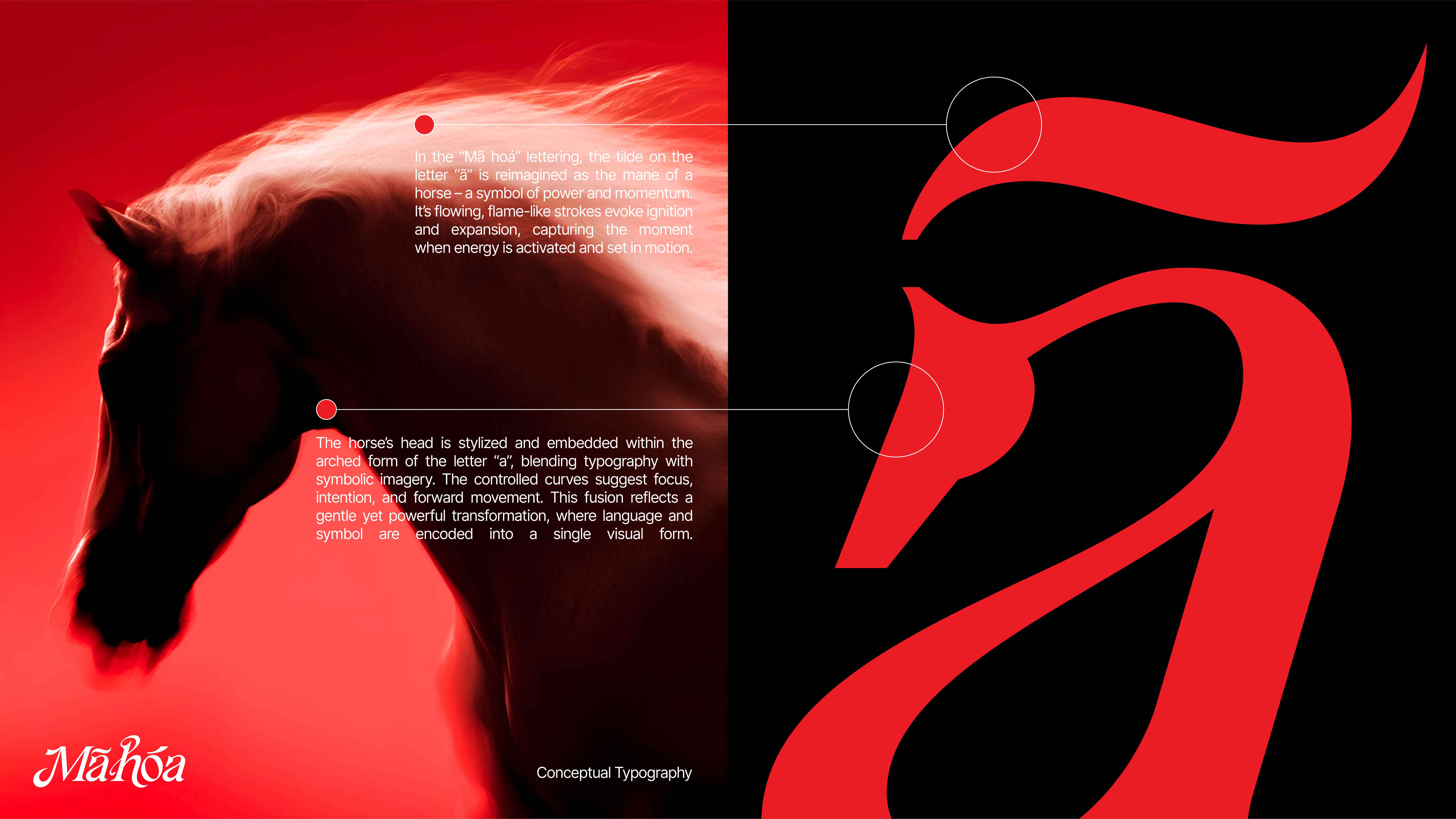 The Horse is inspired by Vietnamese folk art, where symbolic spirit and vibrant color form the foundation of the visual language. Combined with expressive typographic structures and metaphorical forms, the spirit animal moves beyond static representation to become a dynamic emblem – representing inner strength, rebirth, and an ongoing journey of transformation.