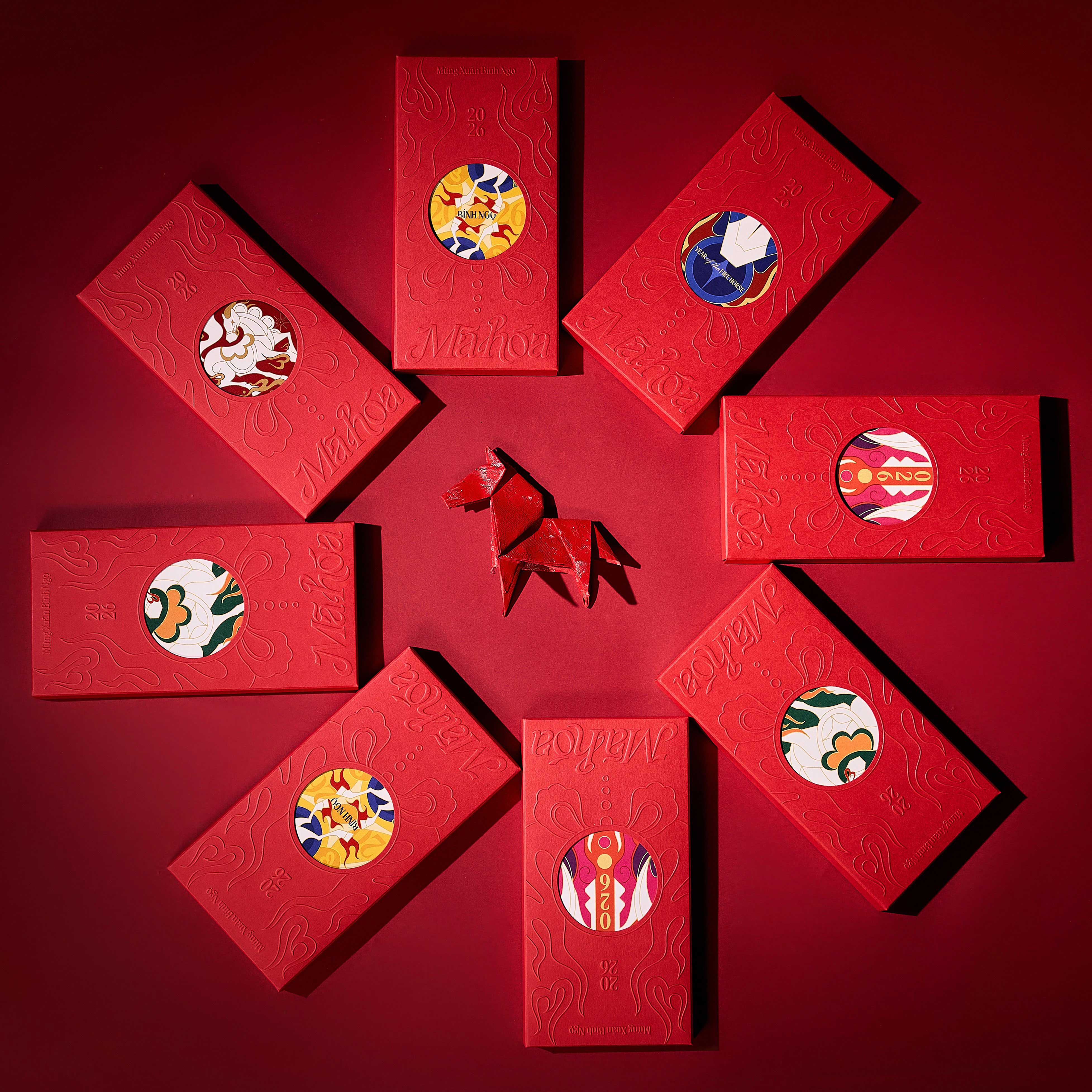 Celebrating Vietnam’s Lunar New Year 2026, the project presents a renewed perspective through the image of the Horse (馬) – the zodiac animal of “Bính Ngọ” (丙午) 2026, applied to a series of red envelope designs. The concept draws inspiration from Vietnamese culture, people, nature, spirituality, and the cosmos.