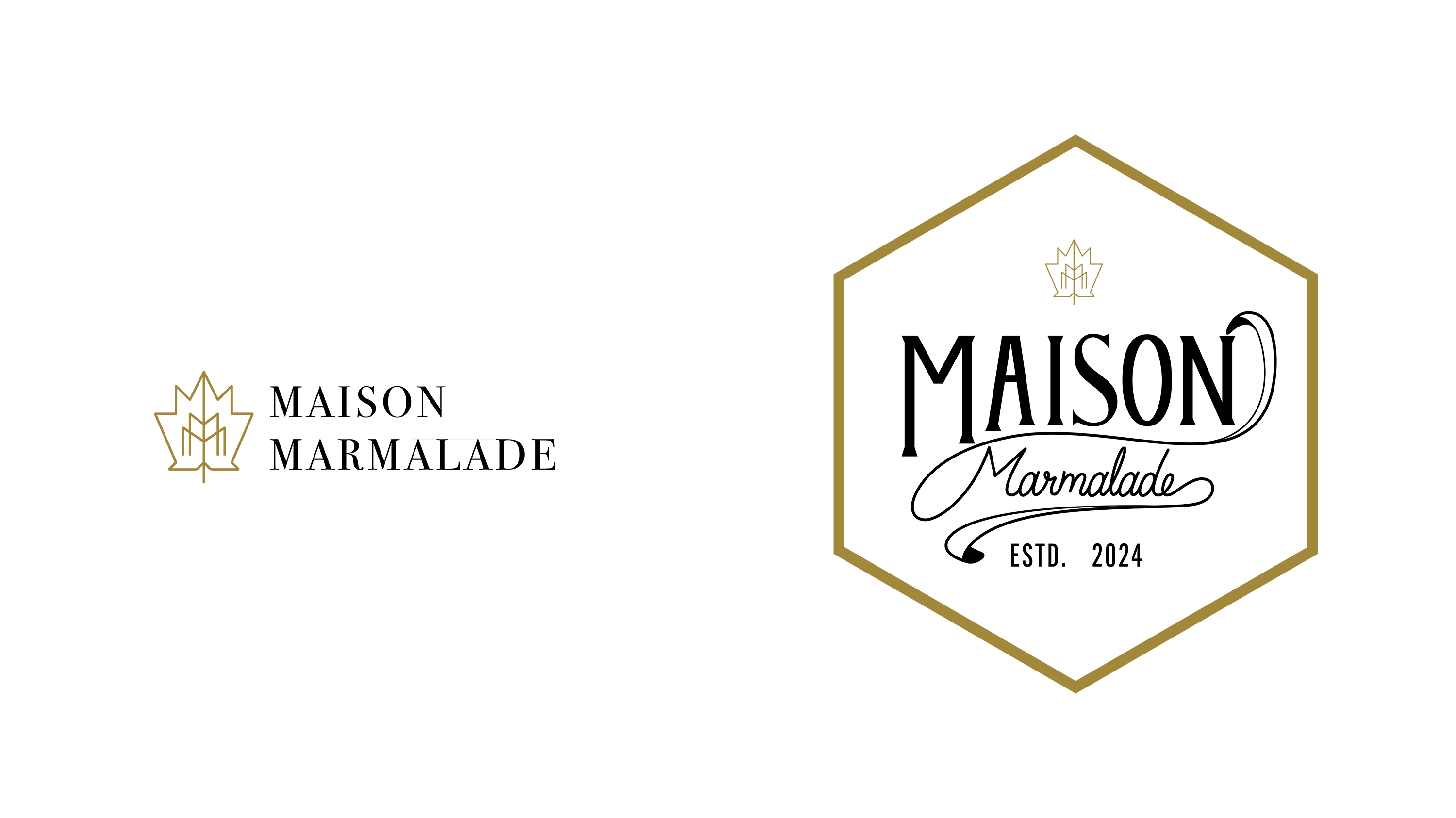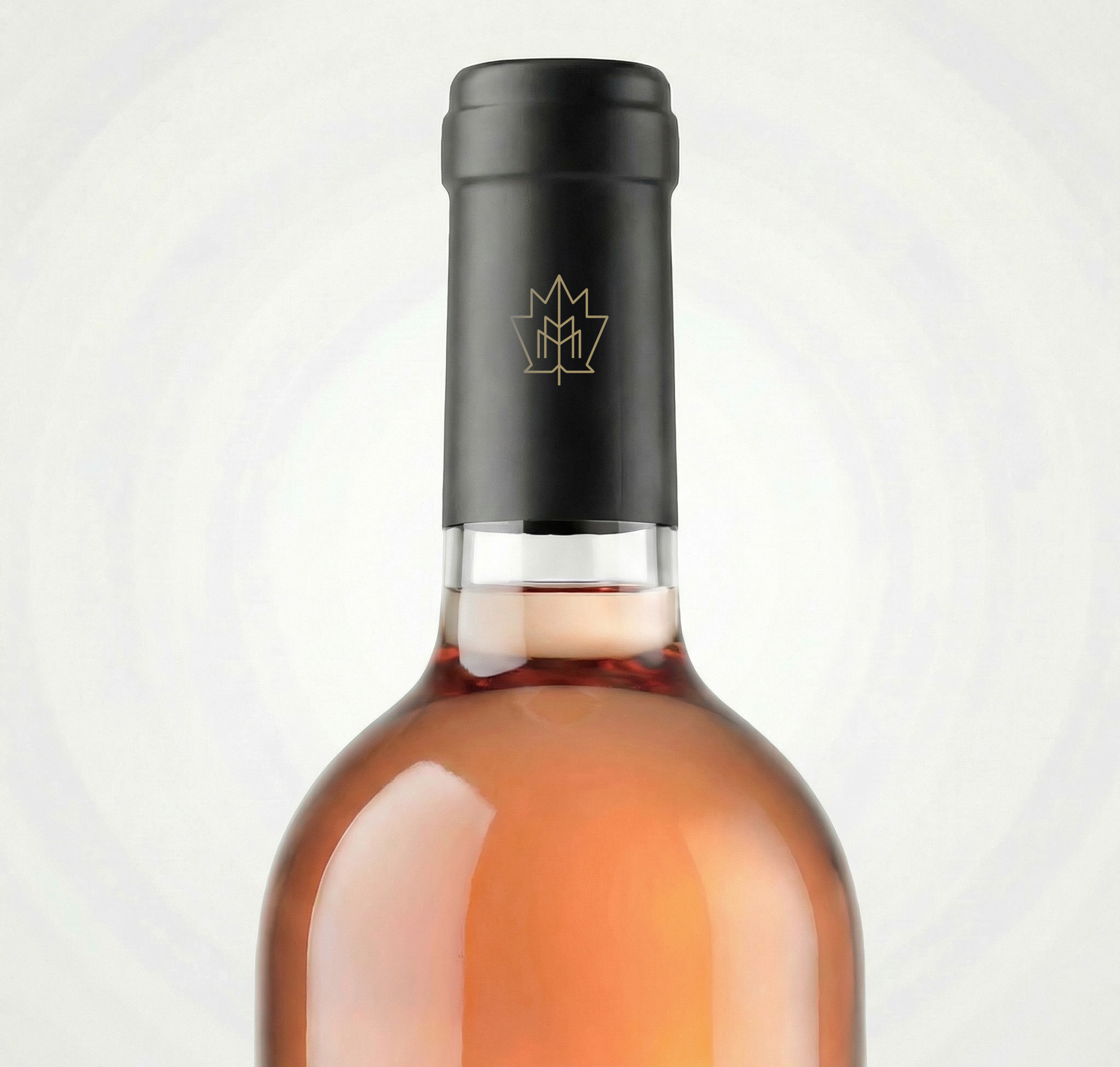 The visual identity of Maison Marmalade is anchored by a distinctive logomark inspired by the grape leaf, a timeless symbol of viticulture, growth, and heritage. The mark is constructed using precise geometric principles, resulting in a symmetrical and balanced form that conveys stability, craftsmanship, and elegance. Subtle internal line detailing hints at vineyard rows and botanical veins, reinforcing the brand’s deep connection to nature and terroir. Rendered in metallic gold, the logomark becomes a luxurious signature element, designed to shine across packaging, foils, seals, and embossed applications.