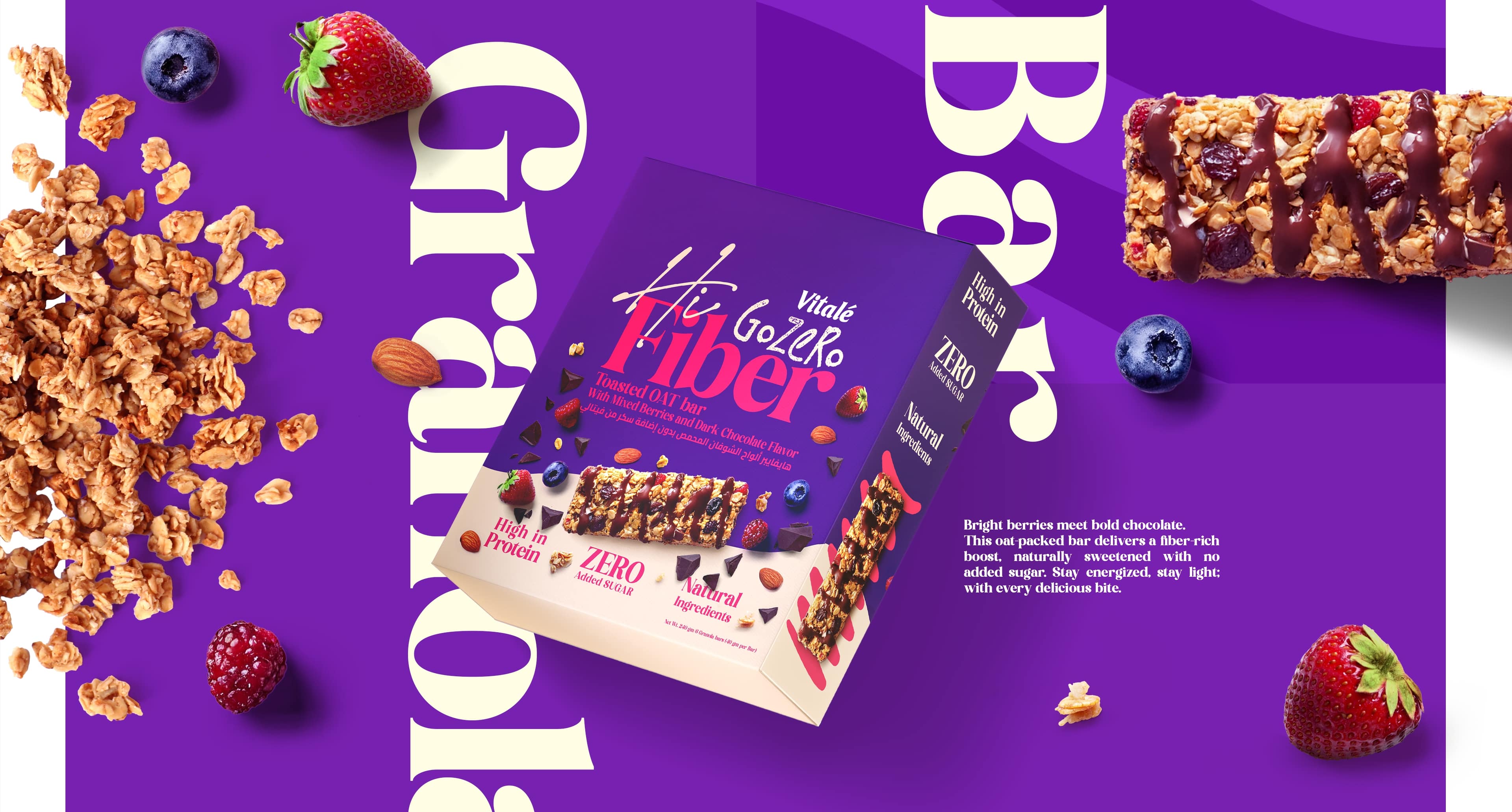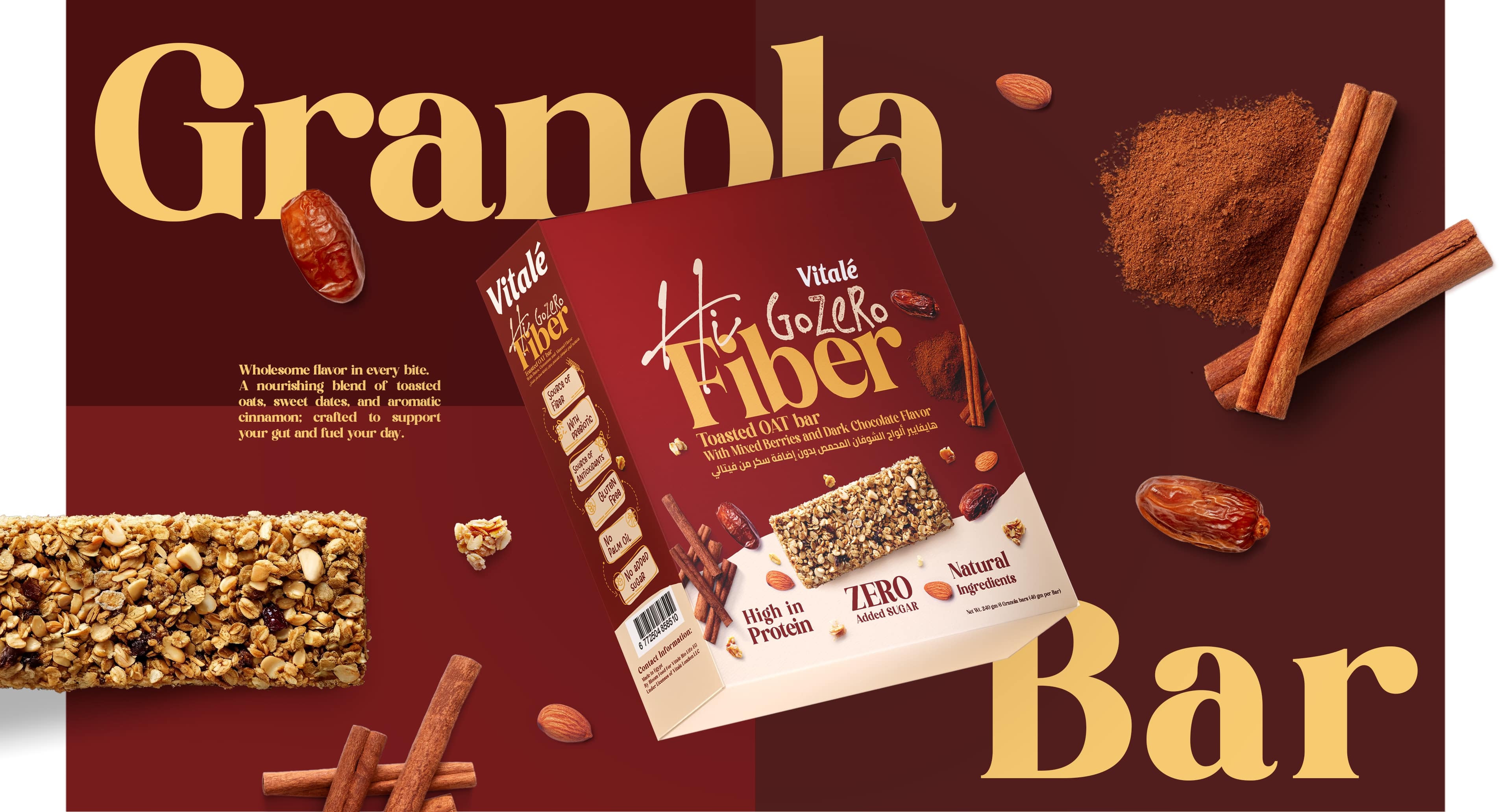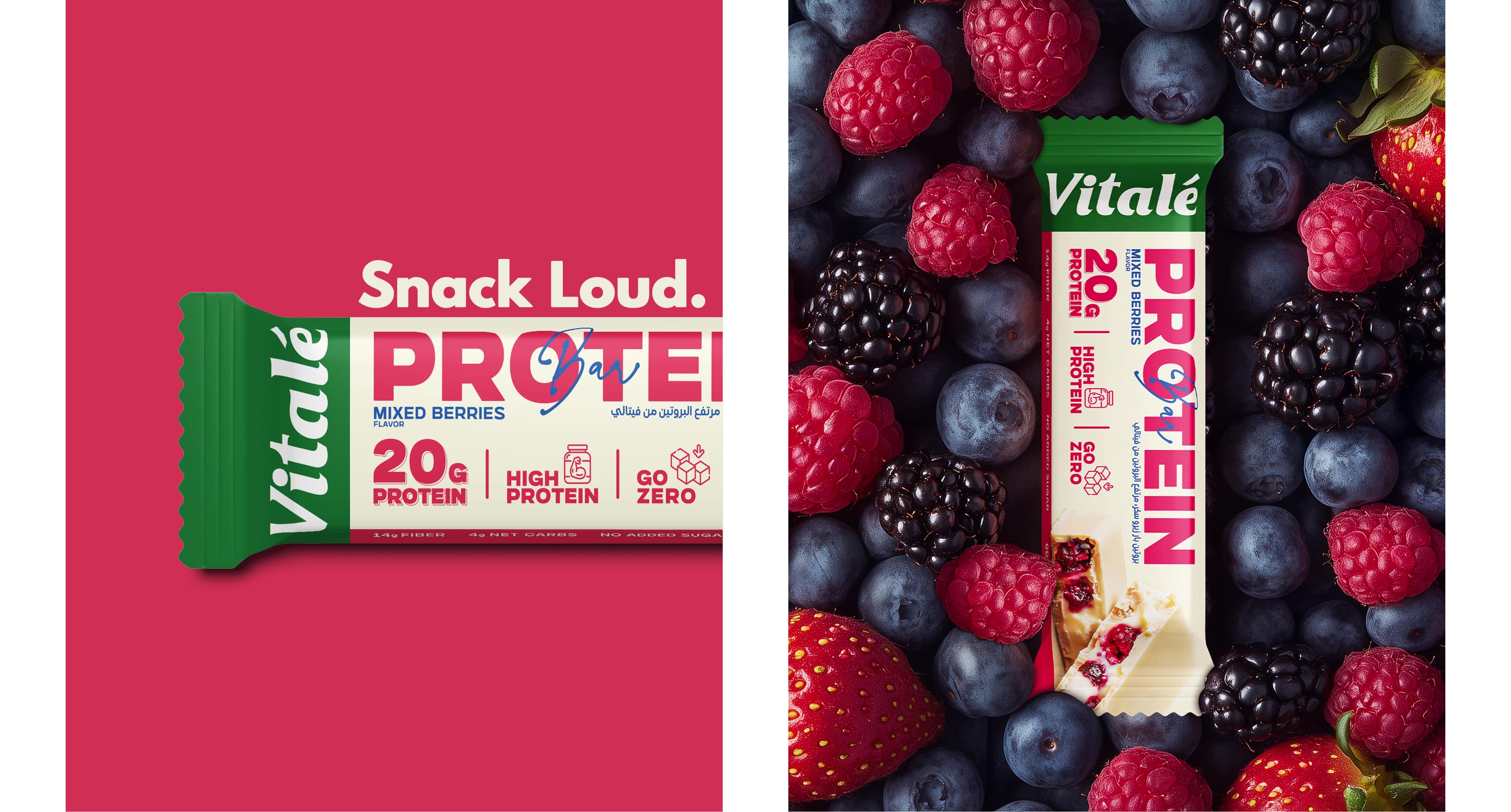 - Keywords: Food Packaging, Snack Branding, Protein Bar Packaging, Granola Bar Design, Wellness Branding, Nutrition Packaging, Healthy Snacks, Functional Food Design, Modern Packaging, Minimal Branding, Bold Color System, Typography Design, Icon System, Structured Layout, Lifestyle Branding, Visual Identity, Brand System, Premium FMCG, Clean Design, Packaging Photography, Matte Finish, Marklinica, Vitalé