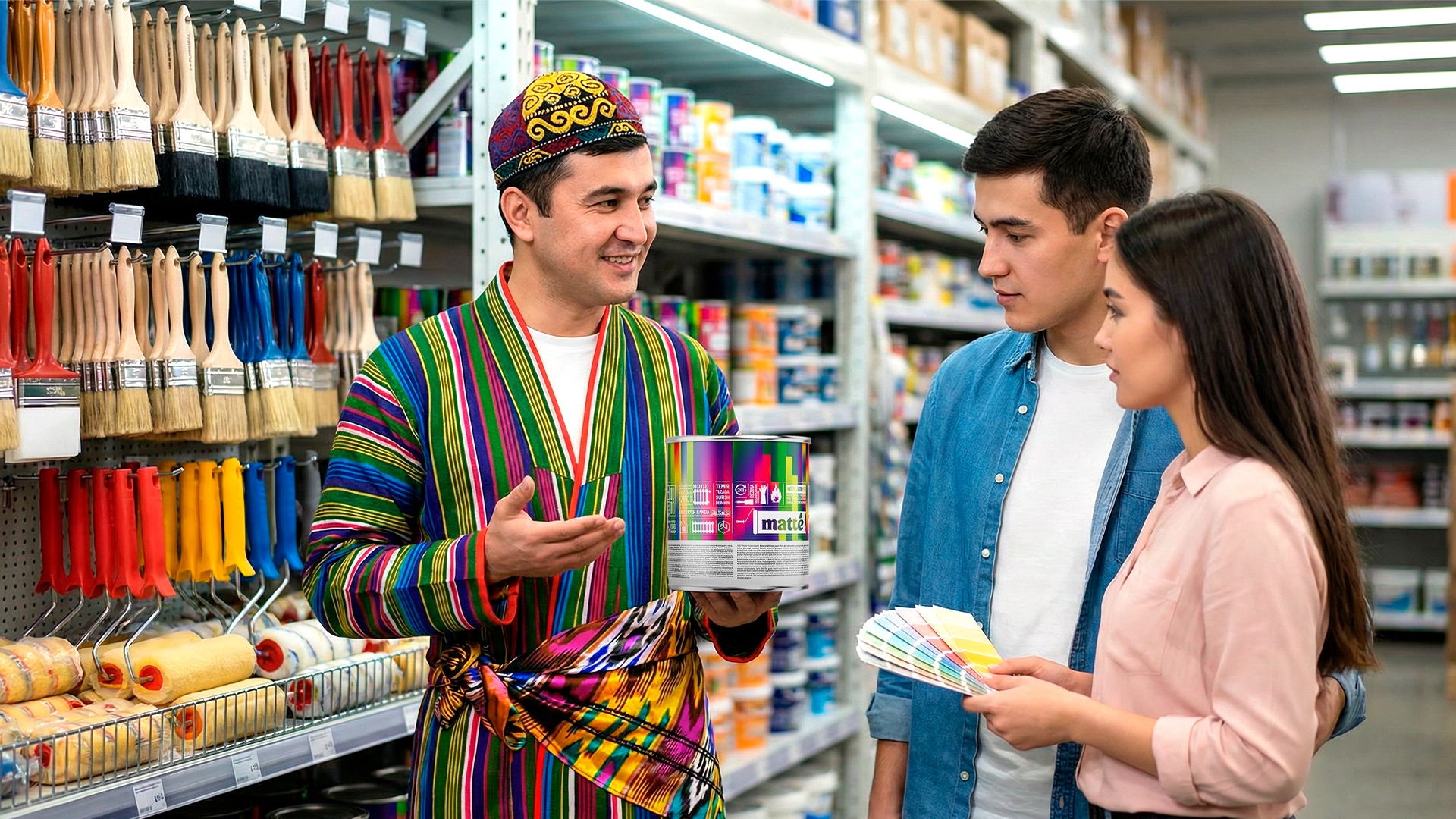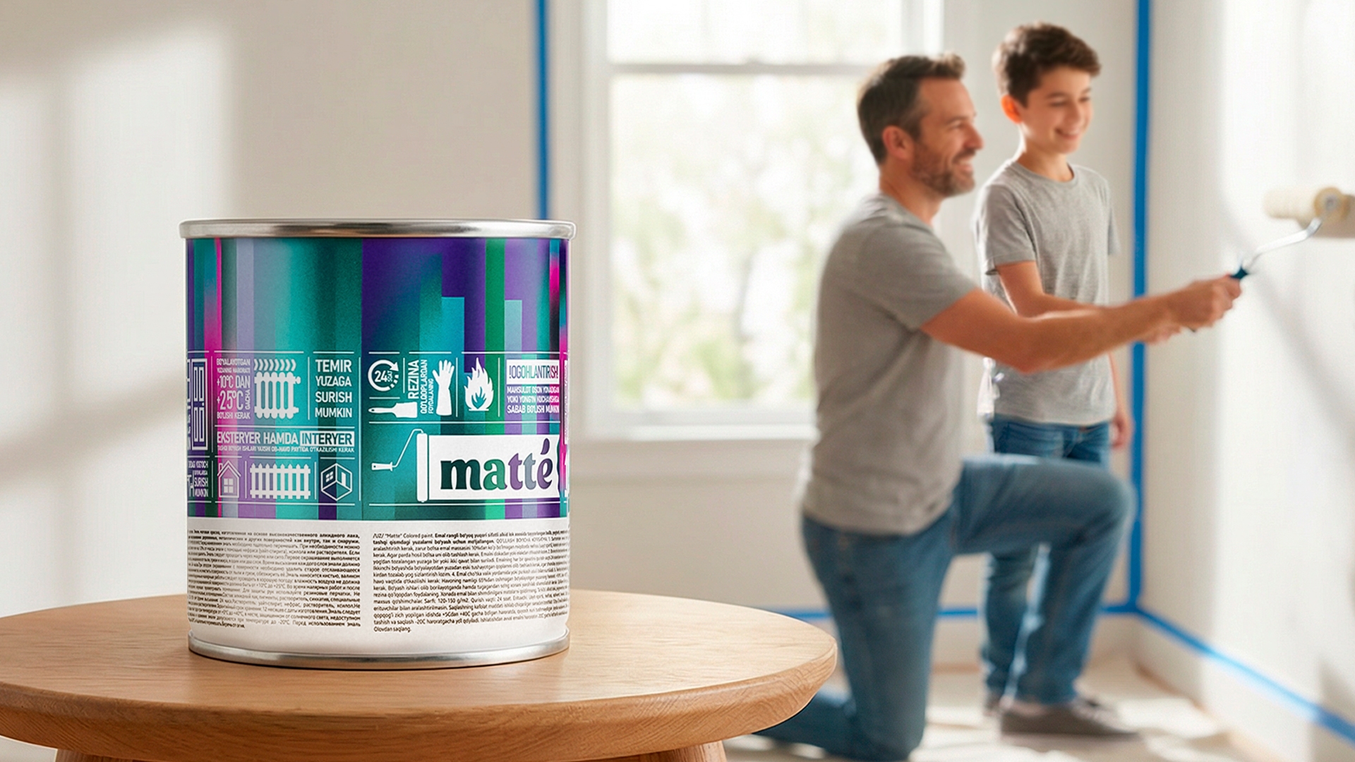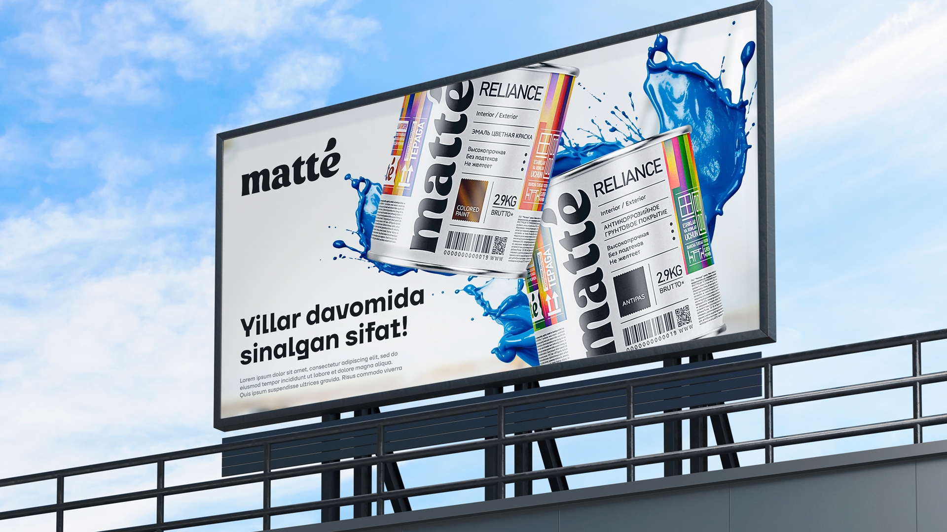 - Keywords: packaging design, branding, Matteco, paint packaging design, facade paint, decorative paint, construction materials branding, paint brand design, Uzbekistan market, visual identity, corporate identity, product positioning, USP, JTBD, consumer experience, marketing, design agency, paint can design, export brand