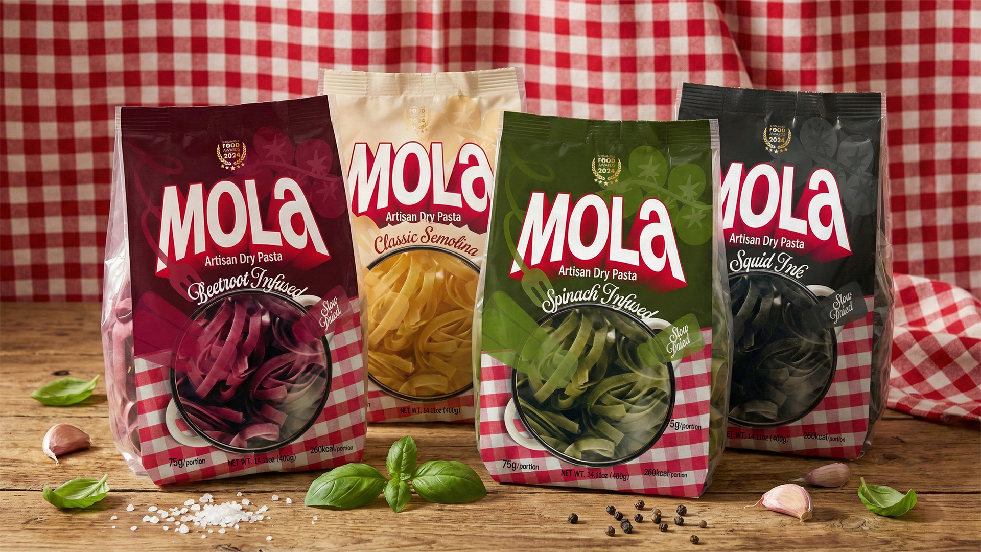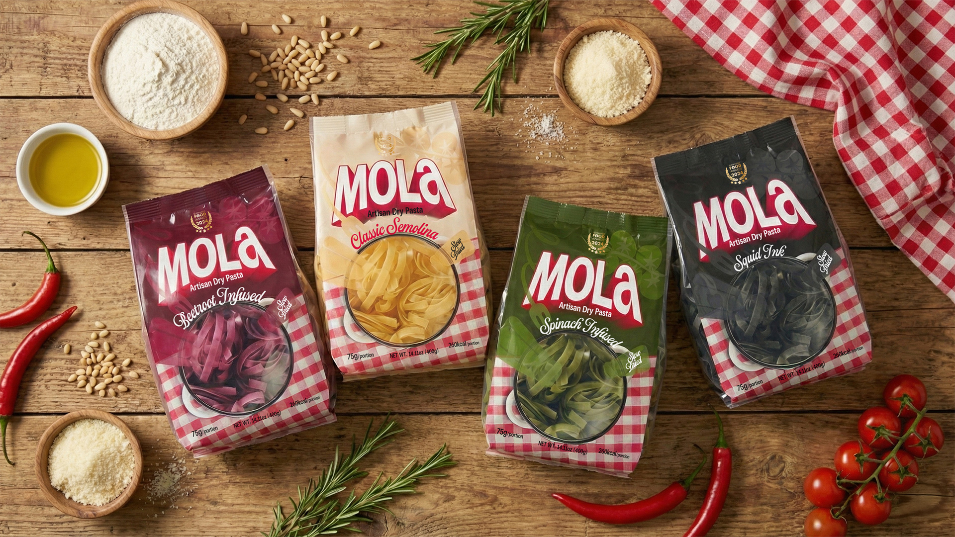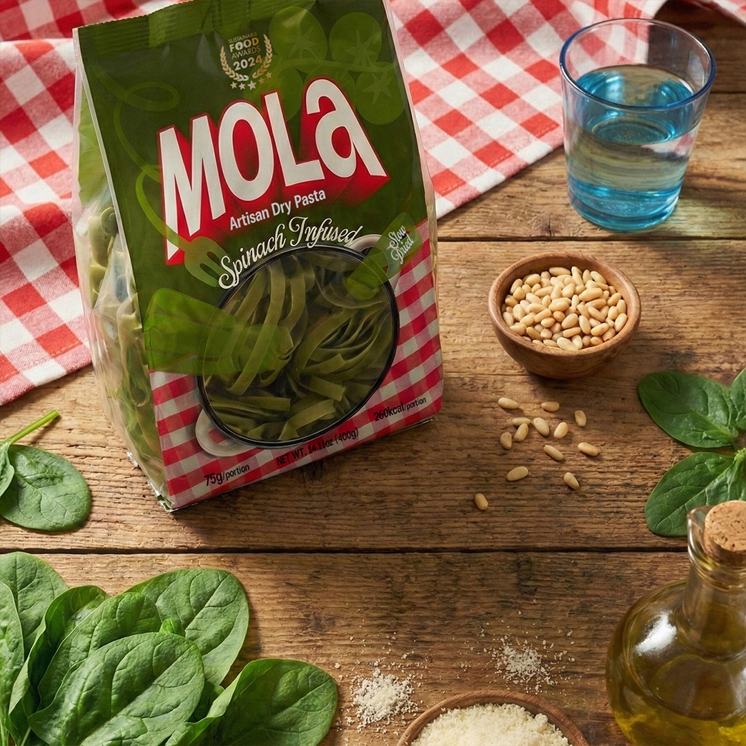 Dry pasta is one of the most crowded and visually noisy categories on the shelf. Speed, value messaging, and exaggerated food imagery dominate the space. MOLA was created as a deliberate counterpoint to this culture — a brand that focuses not on the meal itself, but on the quiet moment before it.