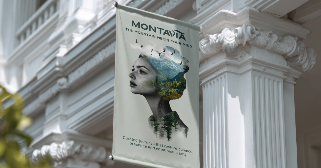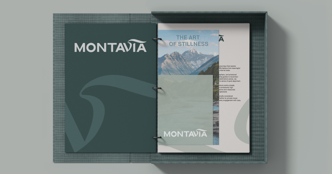 The challenge was to create a brand identity capable of standing apart from the visual intensity of the modern tourism industry. While many travel brands rely on bright colours, crowded imagery, and energetic messaging, Montavia required the opposite approach — a design language that communicates calm, clarity, and space. The project introduced the concept of “State-First Travel,” a philosophy that prioritizes the traveller’s internal experience over a traditional checklist of destinations.