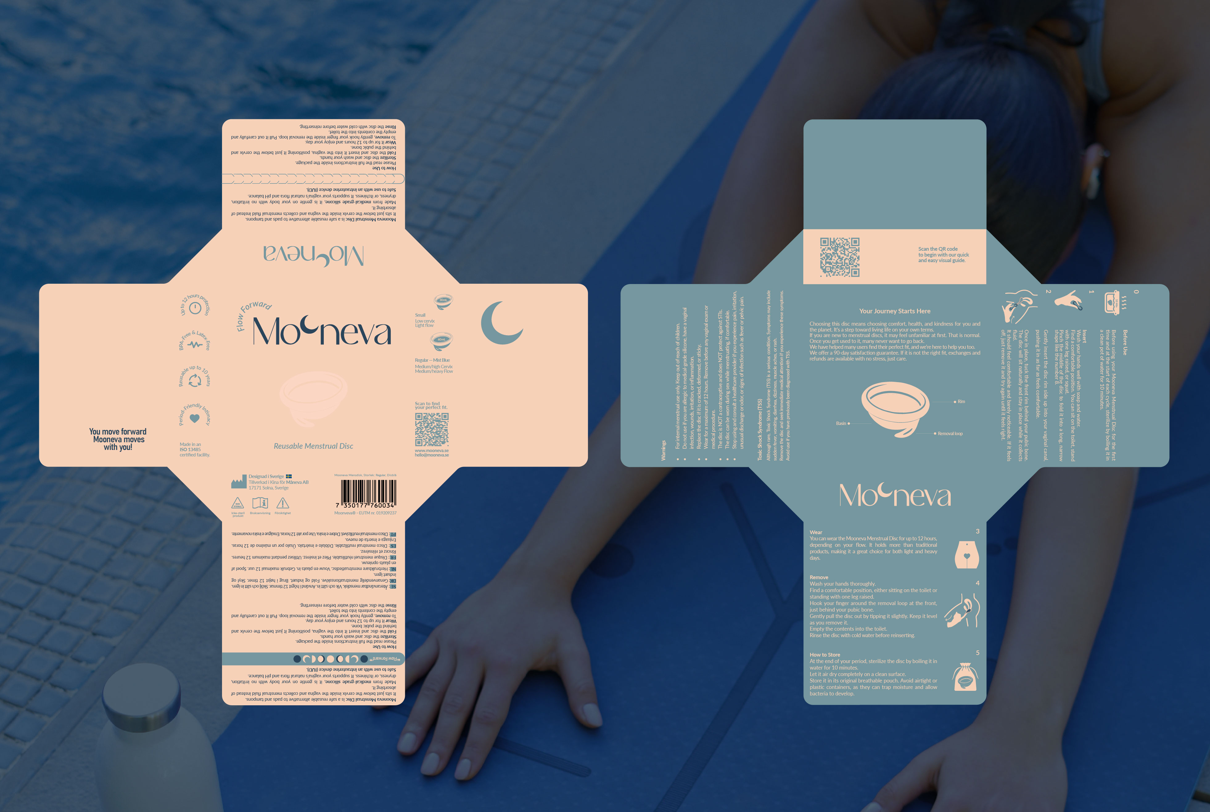 The Mooneva menstrual disc is a reusable product designed to minimize waste, particularly period-related waste. The brand has been developed with a fully design-driven approach across every touchpoint, from product to identity and from the purchasing journey to daily use.