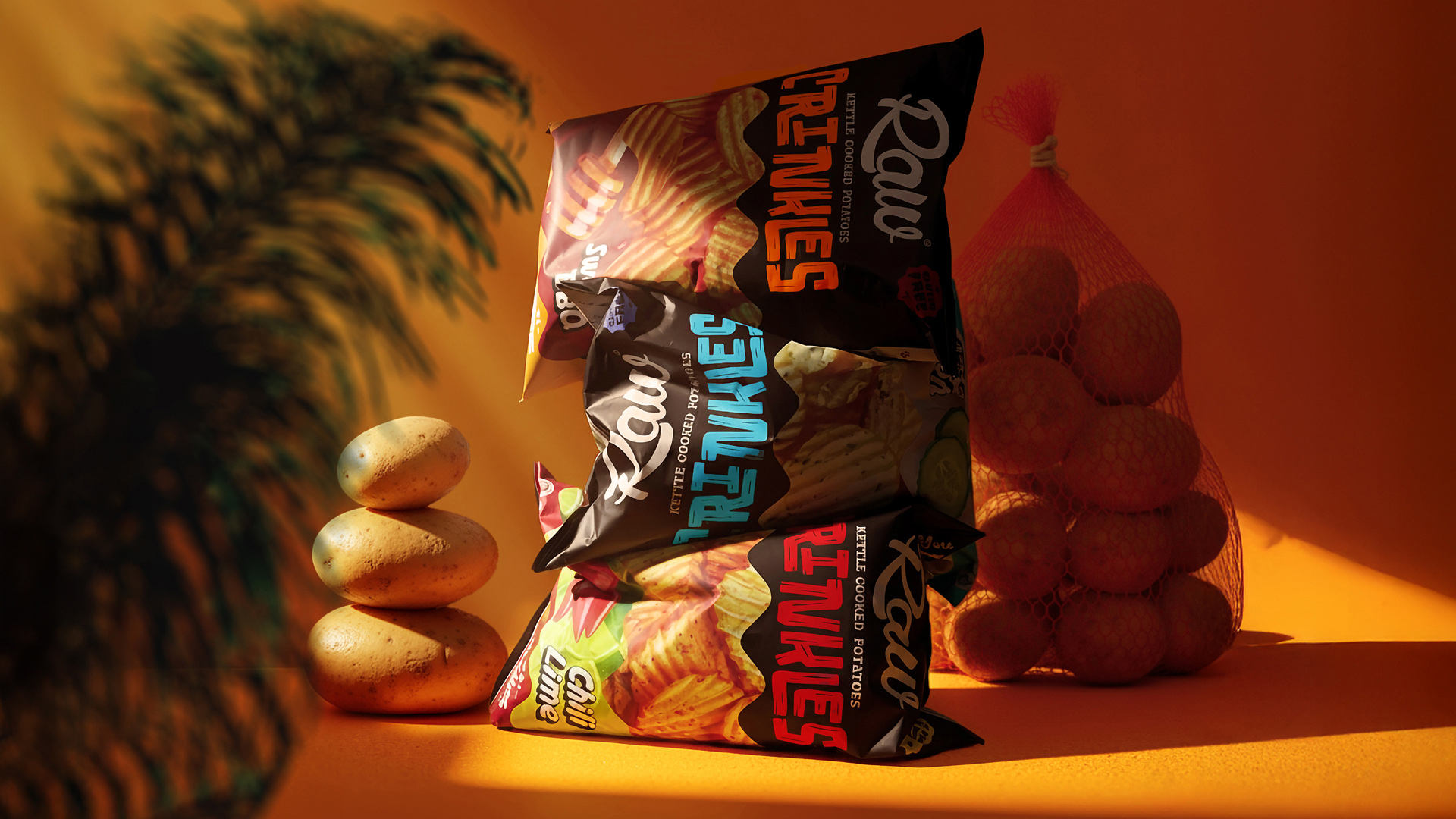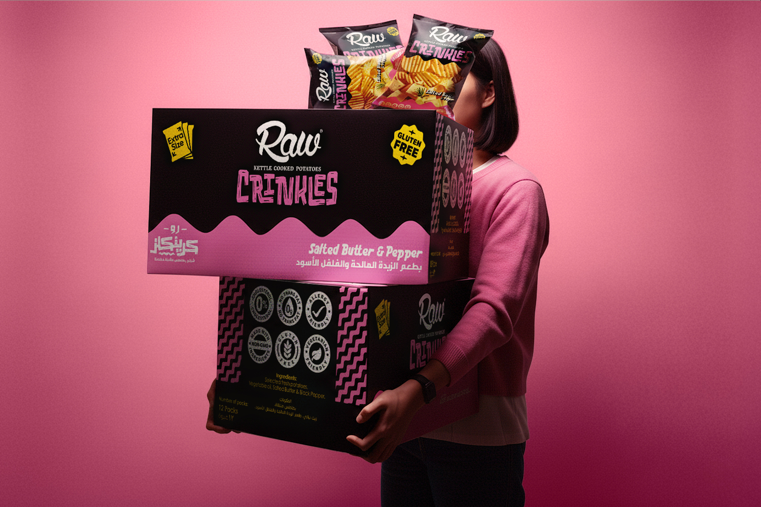 RAW already had a strong identity built around its natural, small-batch, kettle-cooked craftsmanship. But as the snack category in Egypt became increasingly competitive, the brand needed to reimagine its visual language for the Crinkles line to stand out with confidence while still feeling connected to the core brand.