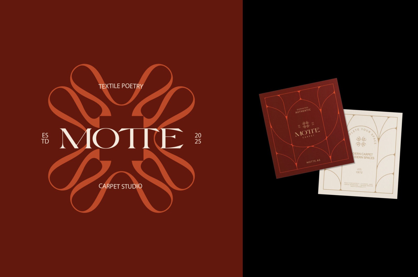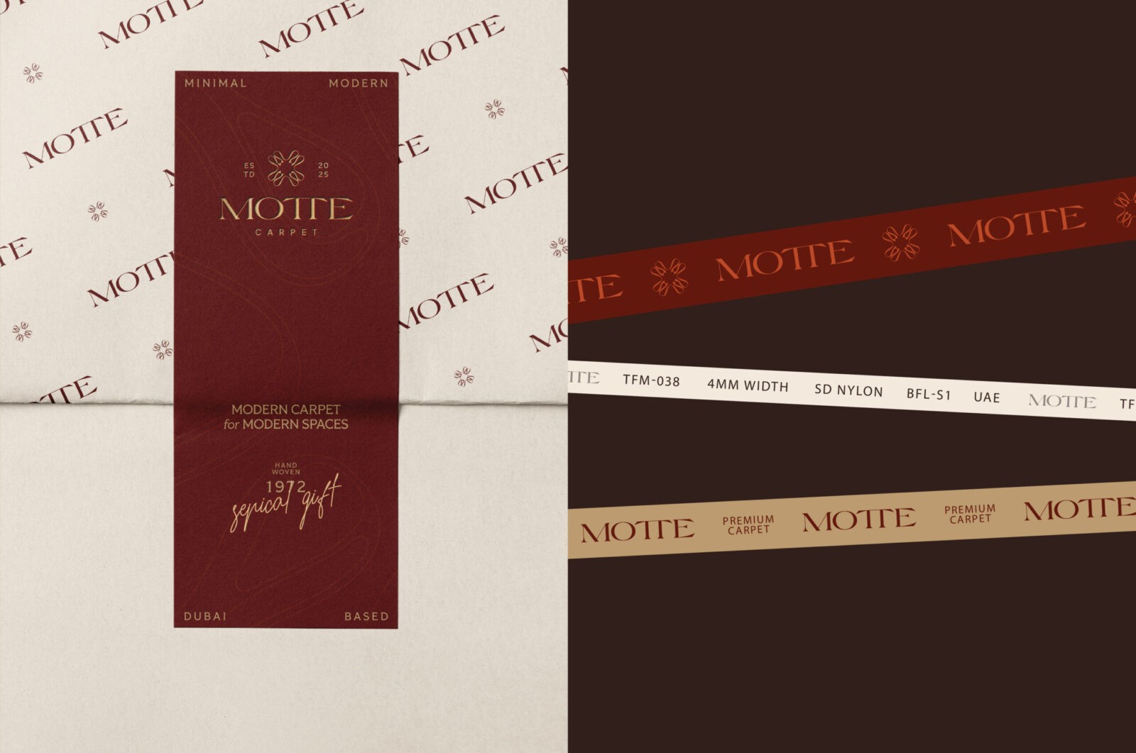 The brand’s visual identity is defined by the harmonious fusion of elegance and tactile physicality. We grounded the entire system in the fundamental element of the product itself: the thread; the warp and weft that give every carpet its form and character. From this foundation, A visual identity built upon Art Deco motifs and patterns, characterized by geometric sophistication and inherent luxury.