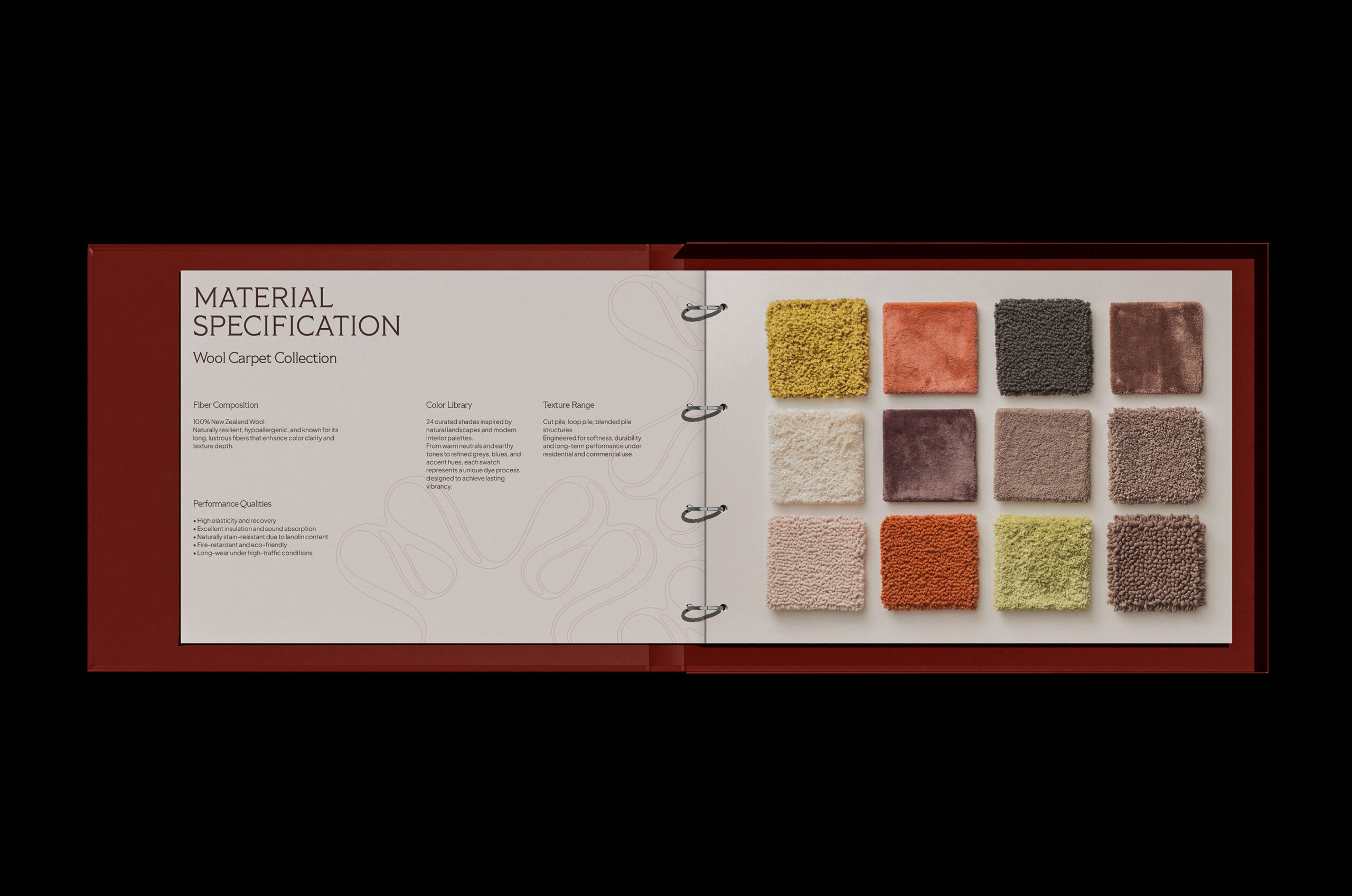 Within this Art Deco language, we focused specifically on curved shapes that possess a liquid, flowing quality. These forms are not used merely as decorative gestures; rather, this fluid geometry becomes a physical translation of the product itself. The curves visually express the way a carpet behaves: the way it drapes, bends, and conforms to the space. In essence, the identity captures the movement of the product rather than only its appearance.