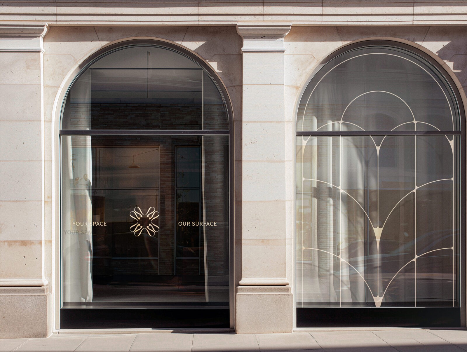 Within this Art Deco language, we focused specifically on curved shapes that possess a liquid, flowing quality. These forms are not used merely as decorative gestures; rather, this fluid geometry becomes a physical translation of the product itself. The curves visually express the way a carpet behaves: the way it drapes, bends, and conforms to the space. In essence, the identity captures the movement of the product rather than only its appearance.