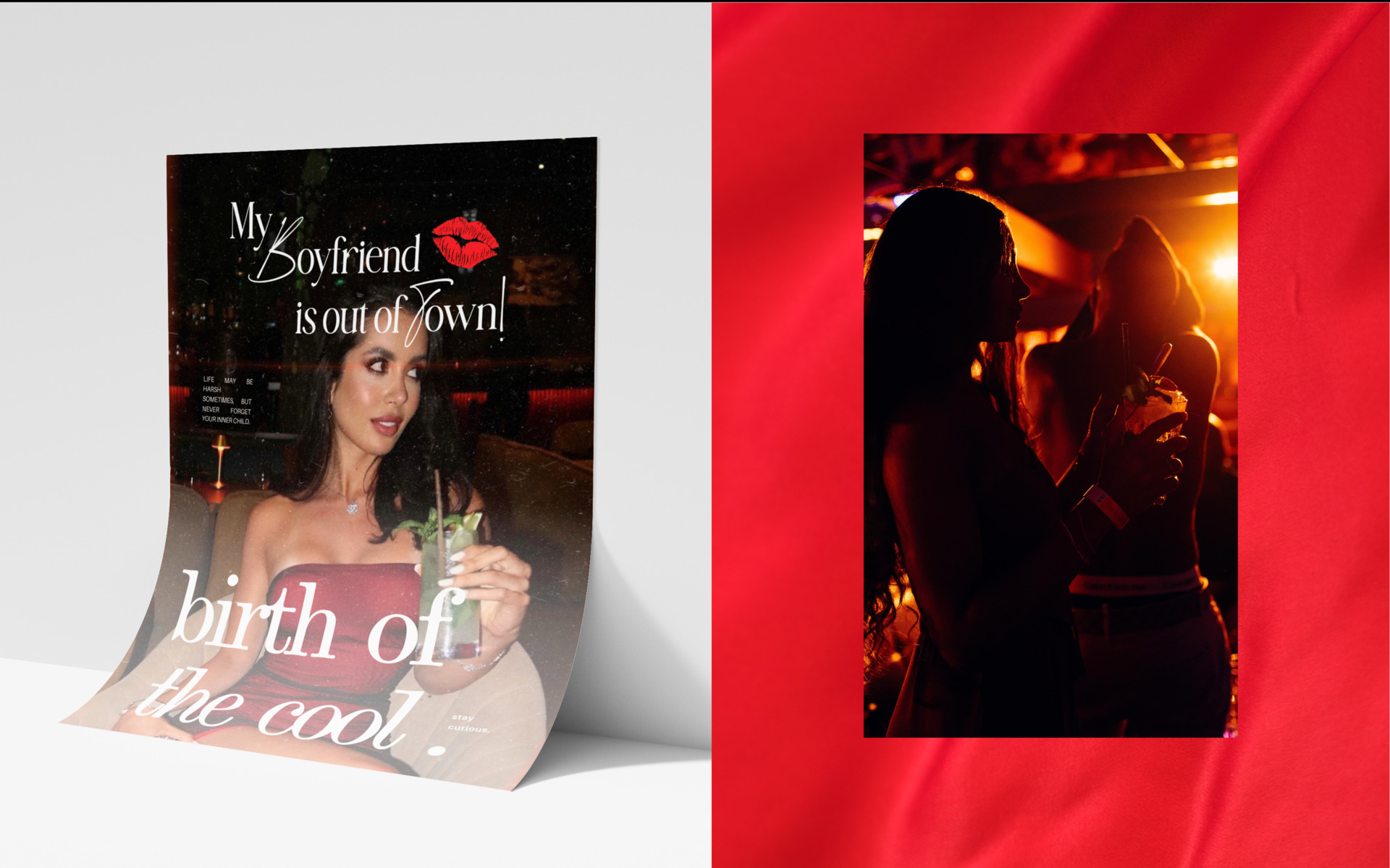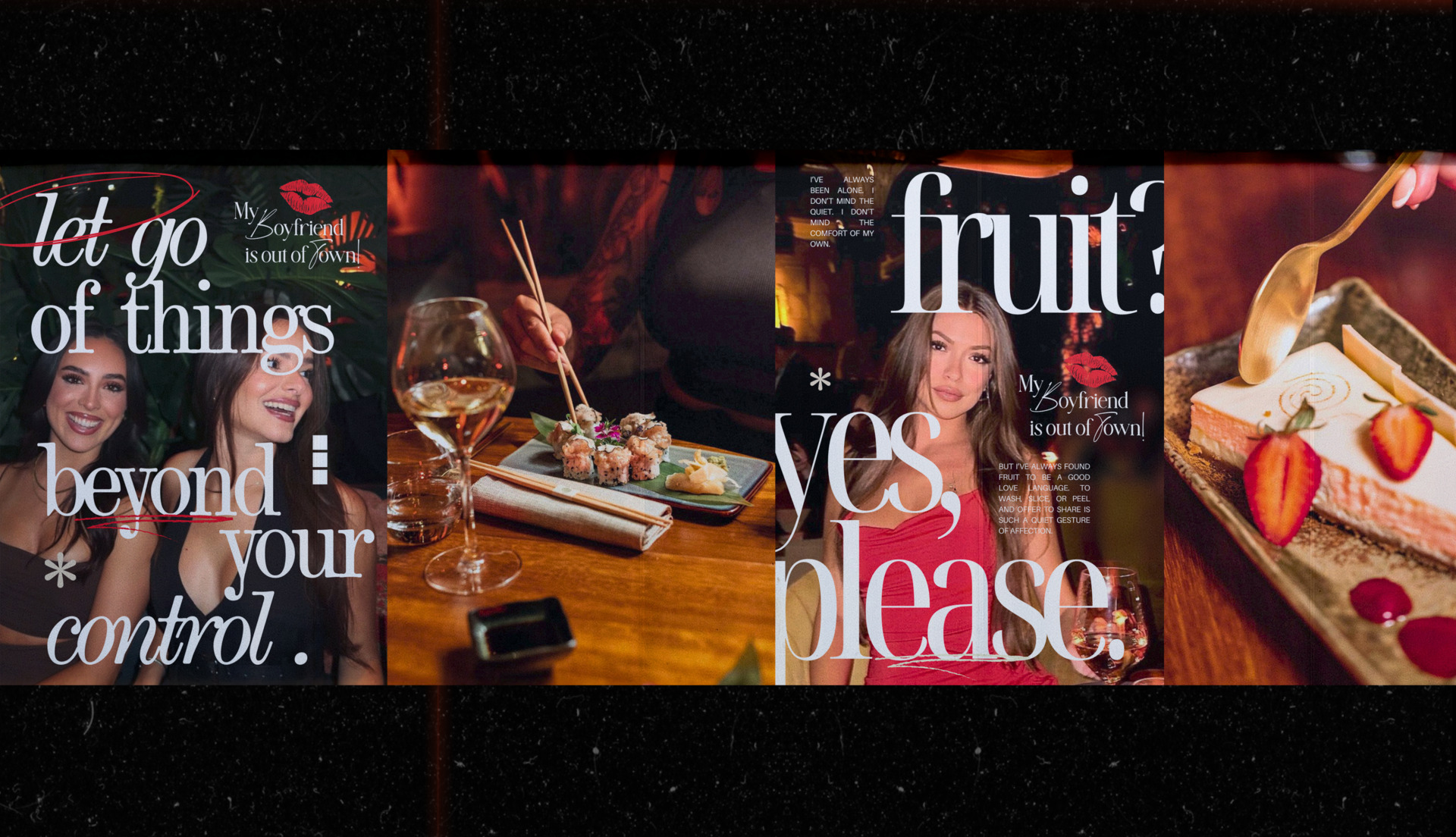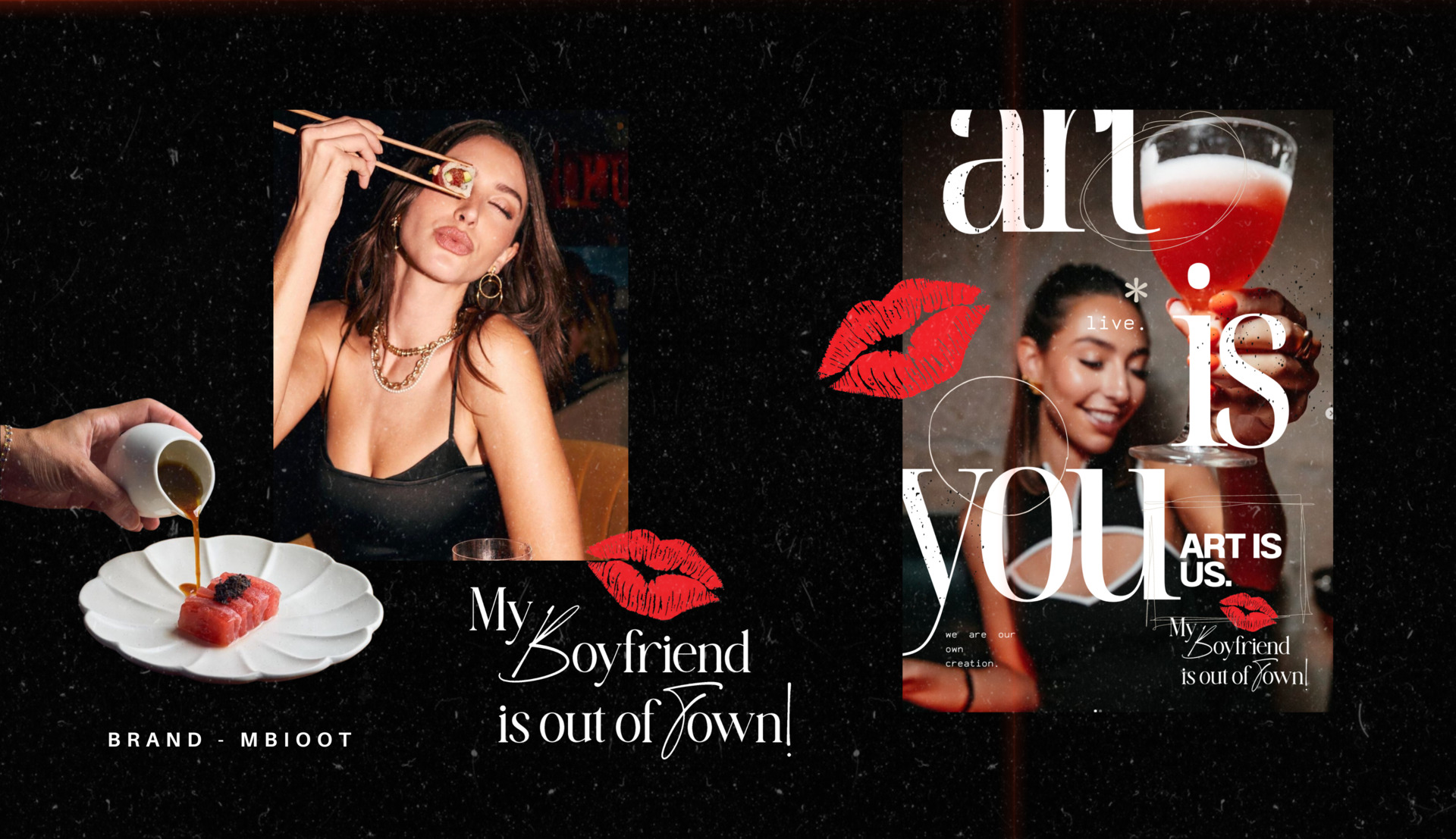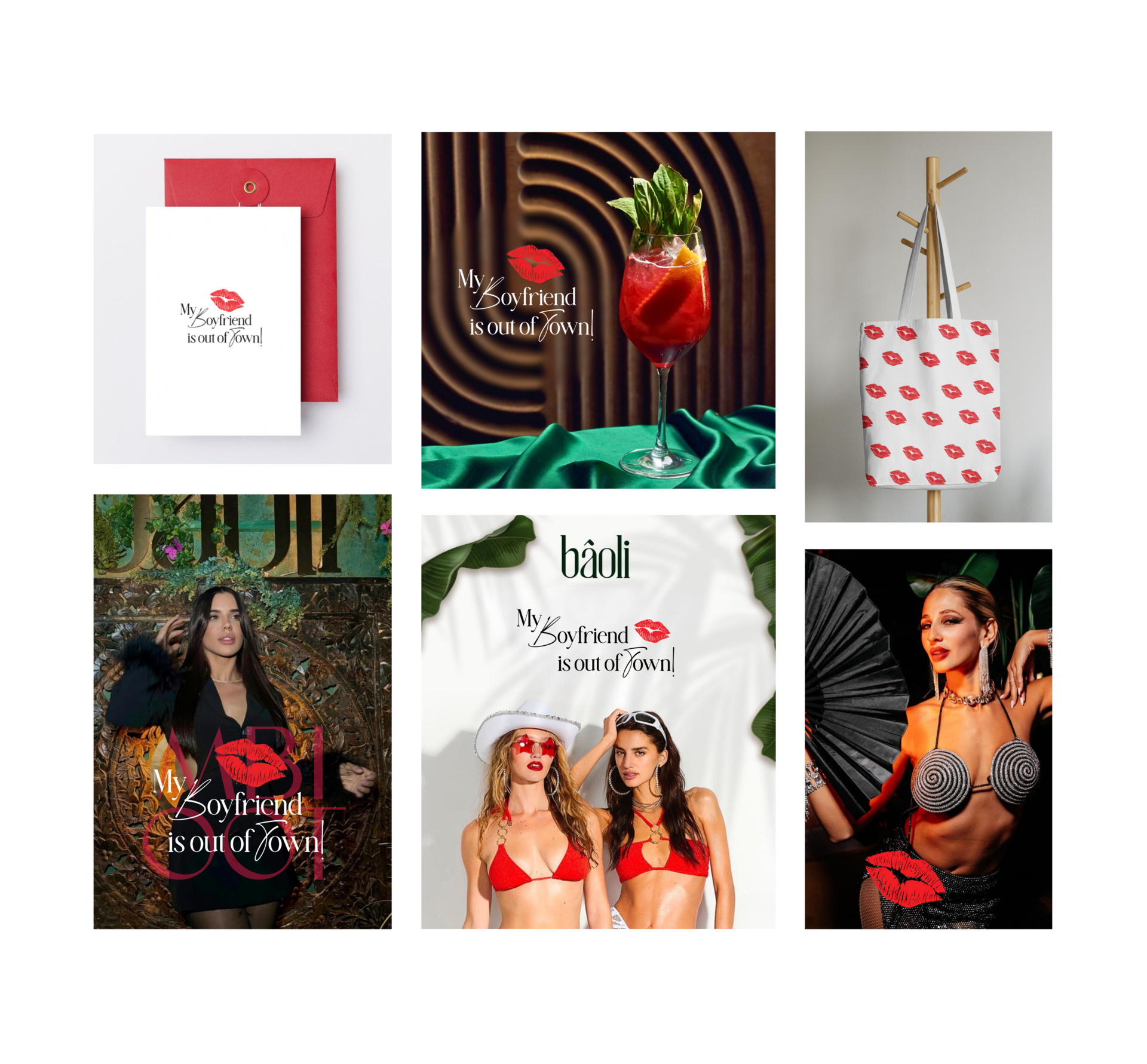 My Boyfriend Is Out Of Town (MBIOOT) is a fashion-forward weekly soirée hosted at Baoli — designed as the ultimate girls’ night out. More than just a party, it’s a curated experience that blends glamour, freedom, and empowerment. The Schedio was brought on to develop a brand identity that mirrors the event’s essence: sexy yet tasteful, bold yet elegant, and unapologetically feminine.
