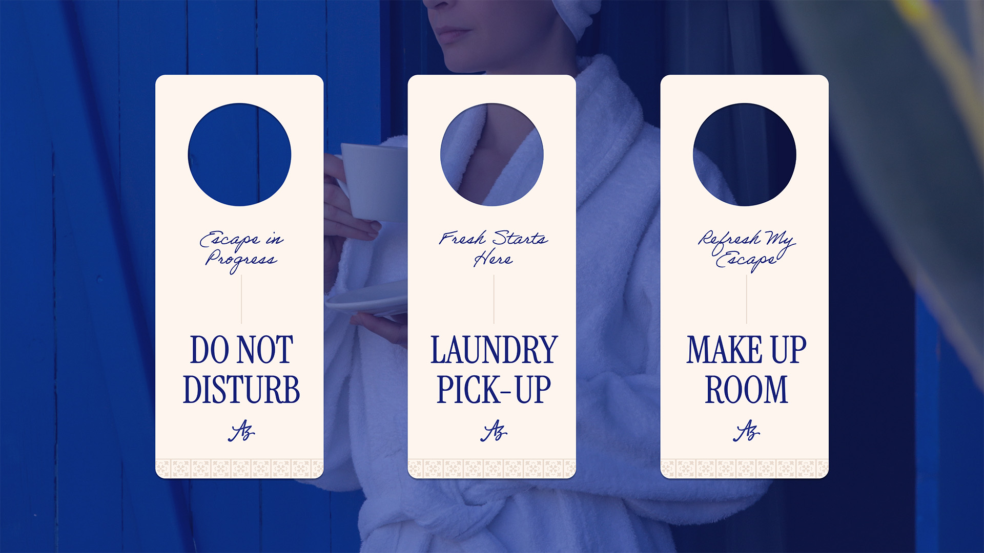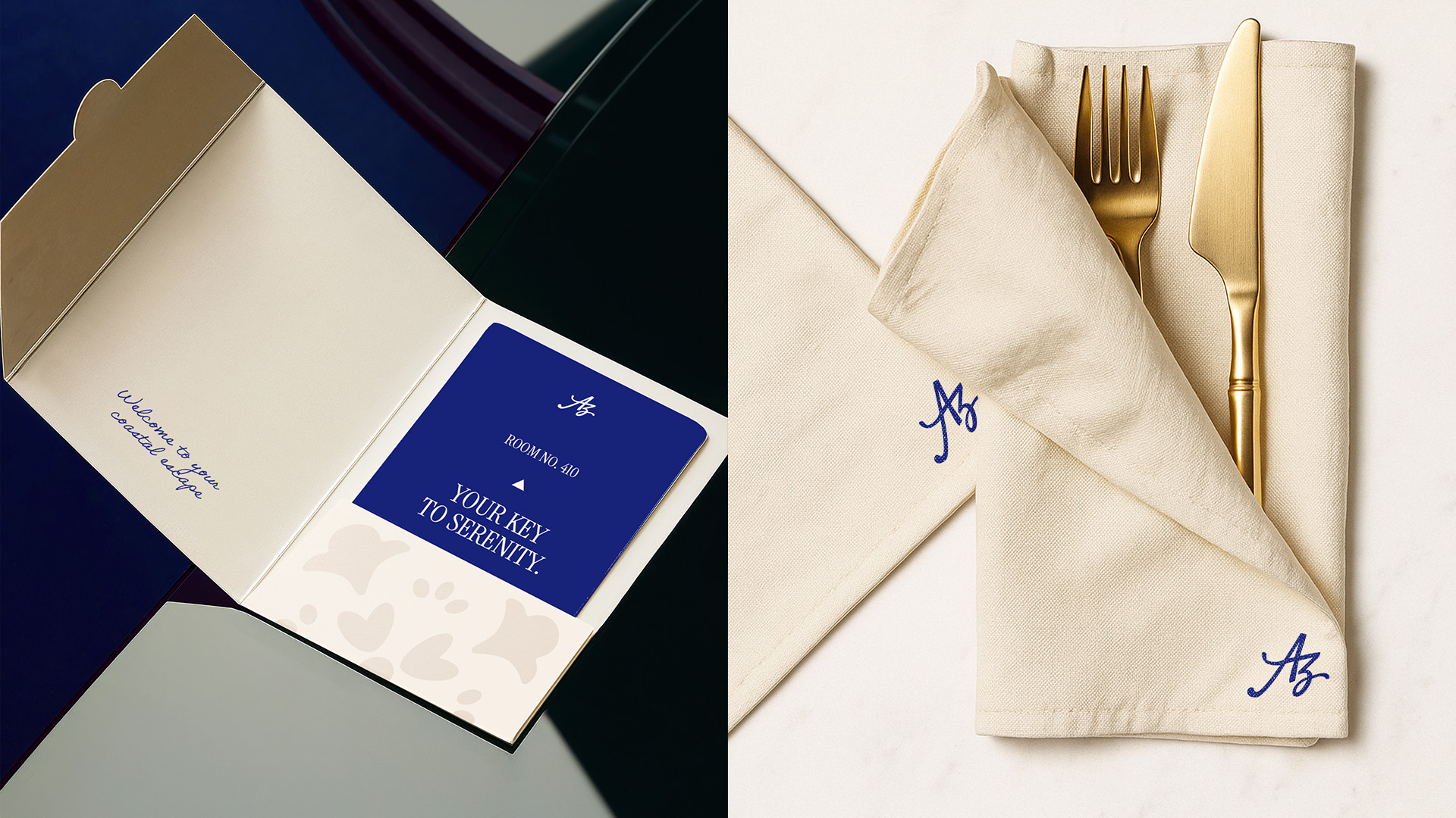 The logo draws inspiration from guestbook signatures found in boutique stays, bringing a sense of personal touch and handwritten authenticity. A customized script logo paired with a secondary “AZ” mark builds a flexible identity structure.