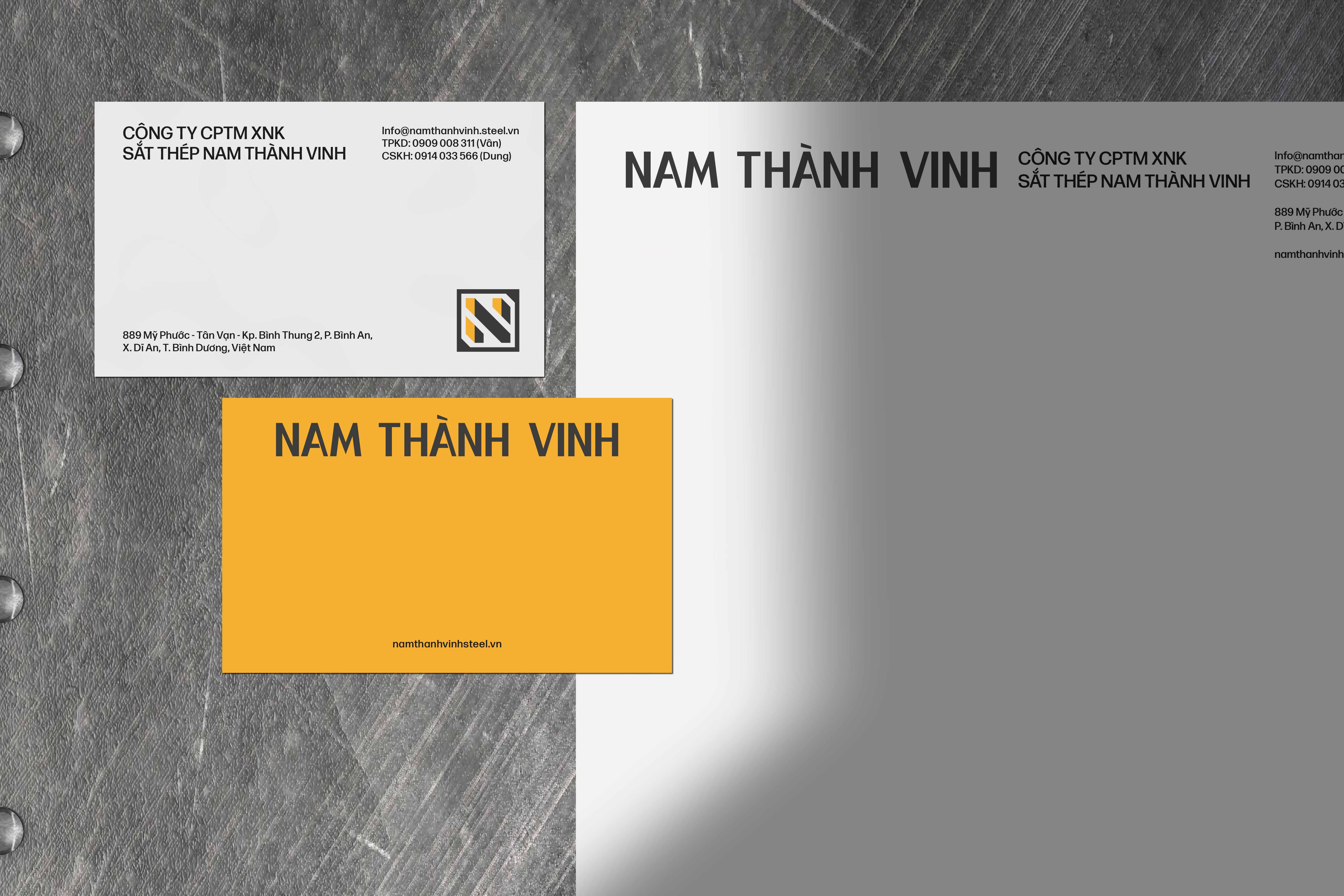 Beyond simply refreshing the logo, the goal was to establish a visual language that could communicate the robustness of steel while still maintaining a sense of clarity and approachability. In an industry that often relies heavily on traditional and generic visuals, the project also aimed to create a distinctive identity that helps Nam Thanh Vinh Steel stand out in the highly competitive steel trading market.
