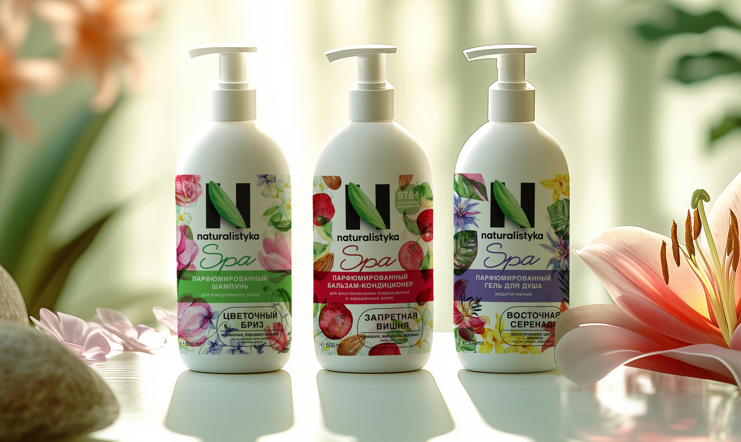 To create a visual identity and packaging that convey key values: gentleness, care, naturalness, and restoration. It was important to maintain continuity with the core Naturalistyka brand while creating a unique identity for the SPA line that appeals to a new, more sophisticated audience.
