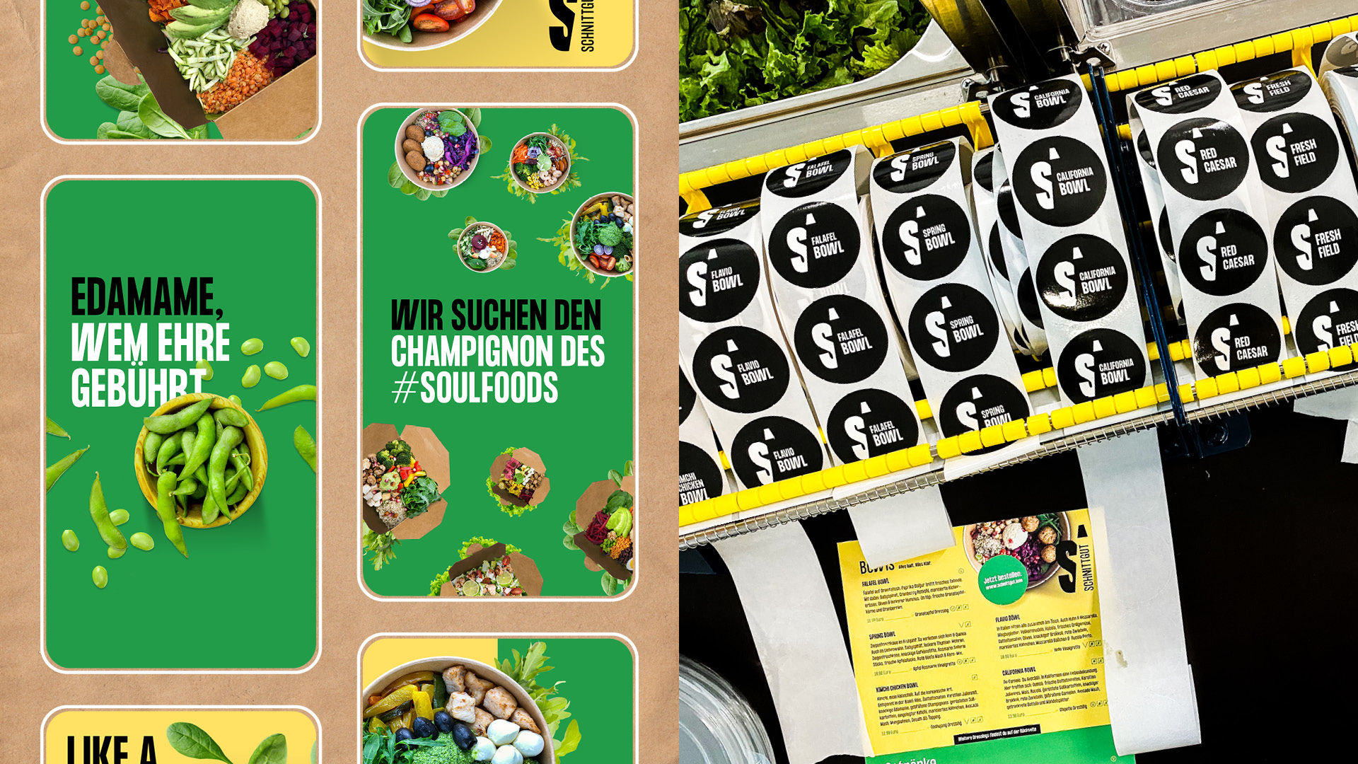 Schnittgut has been completely redeveloped as a brand. From naming, logo, corporate language, and visual system to the consistent design of all touchpoints, the case ranges from packaging and OOH to window and surface communication. The name is not arbitrary, but is derived directly from the product itself: cut, freshly prepared vegetables that you can see, smell, and immediately understand.
