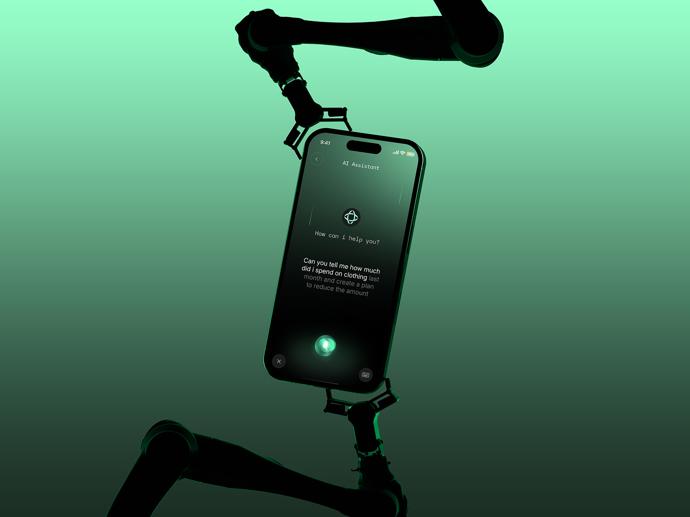 Depth, glow, and minimal compositions reinforce a sense of calm and intelligent technology, supported by a deep green and mint color palette that communicates trust, clarity, and focus.