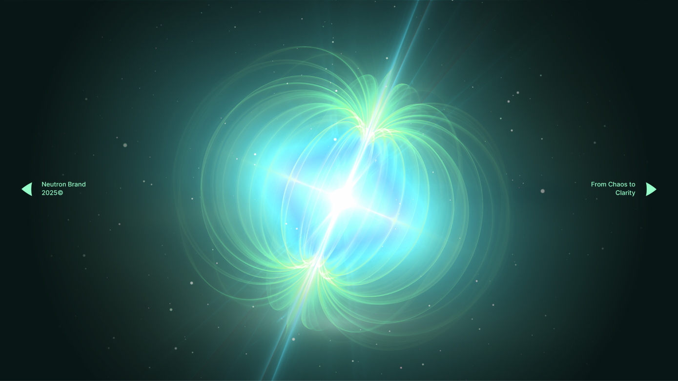Just as a neutron holds an atom together, the brand represents a central intelligence that organizes scattered data.