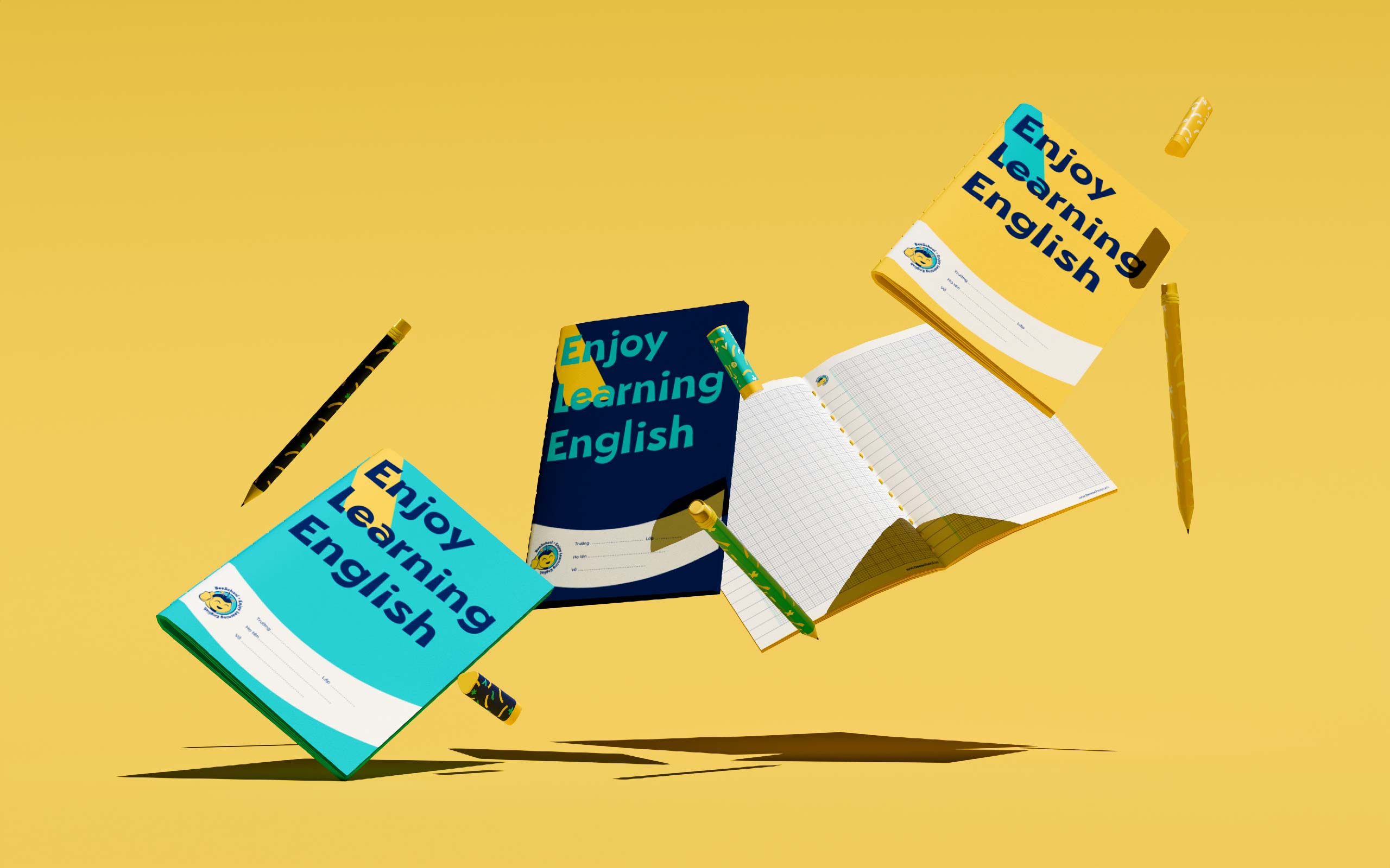 In addition, the identity pattern is developed based on logo block and brand image philosophy (Enjoy Learning English), with various shades of funny smiles, creating a sense of optimism and friendliness and bringing interesting experiences for young learners