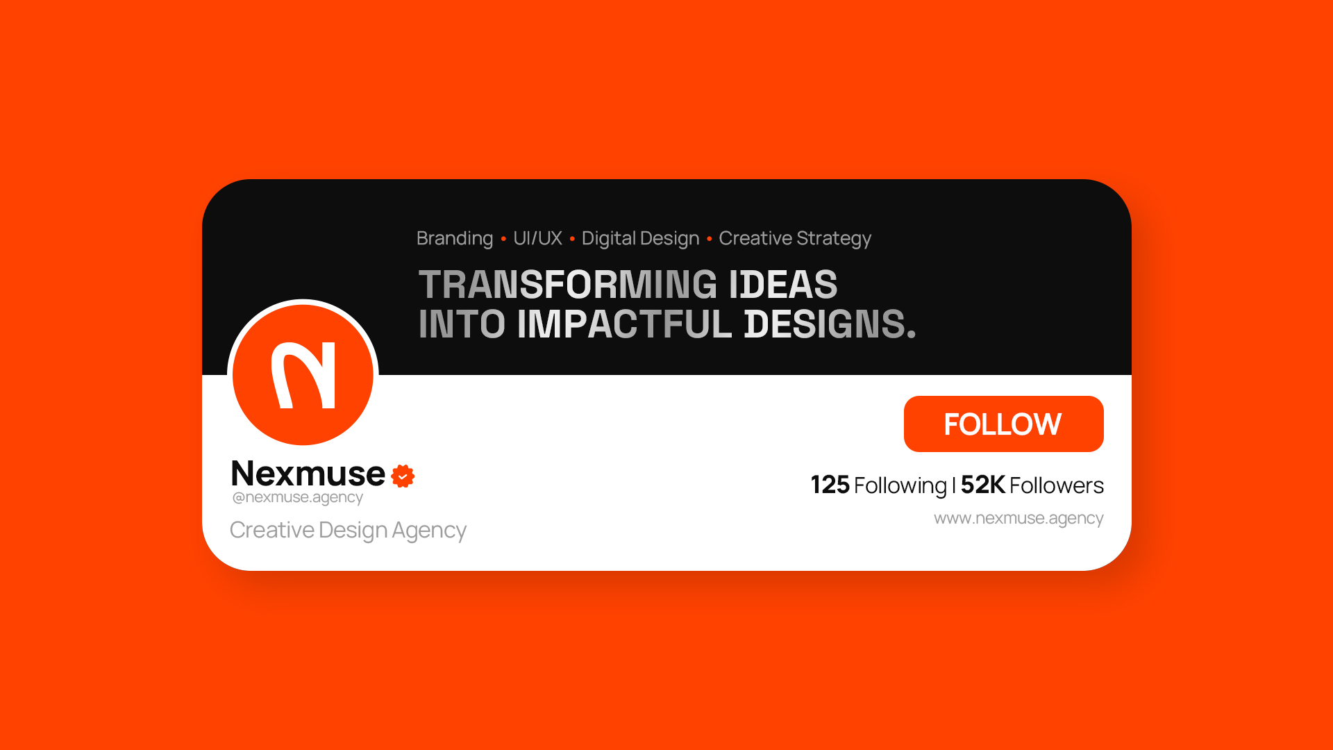 Through this project, Nexmuse establishes a strong and recognizable visual foundation that reflects the agency’s vision of delivering creative, impactful, and high-quality design solutions. The identity represents a balance between creativity and professionalism, positioning Nexmuse as a modern design agency ready to help brands communicate their ideas through thoughtful and powerful visual design.