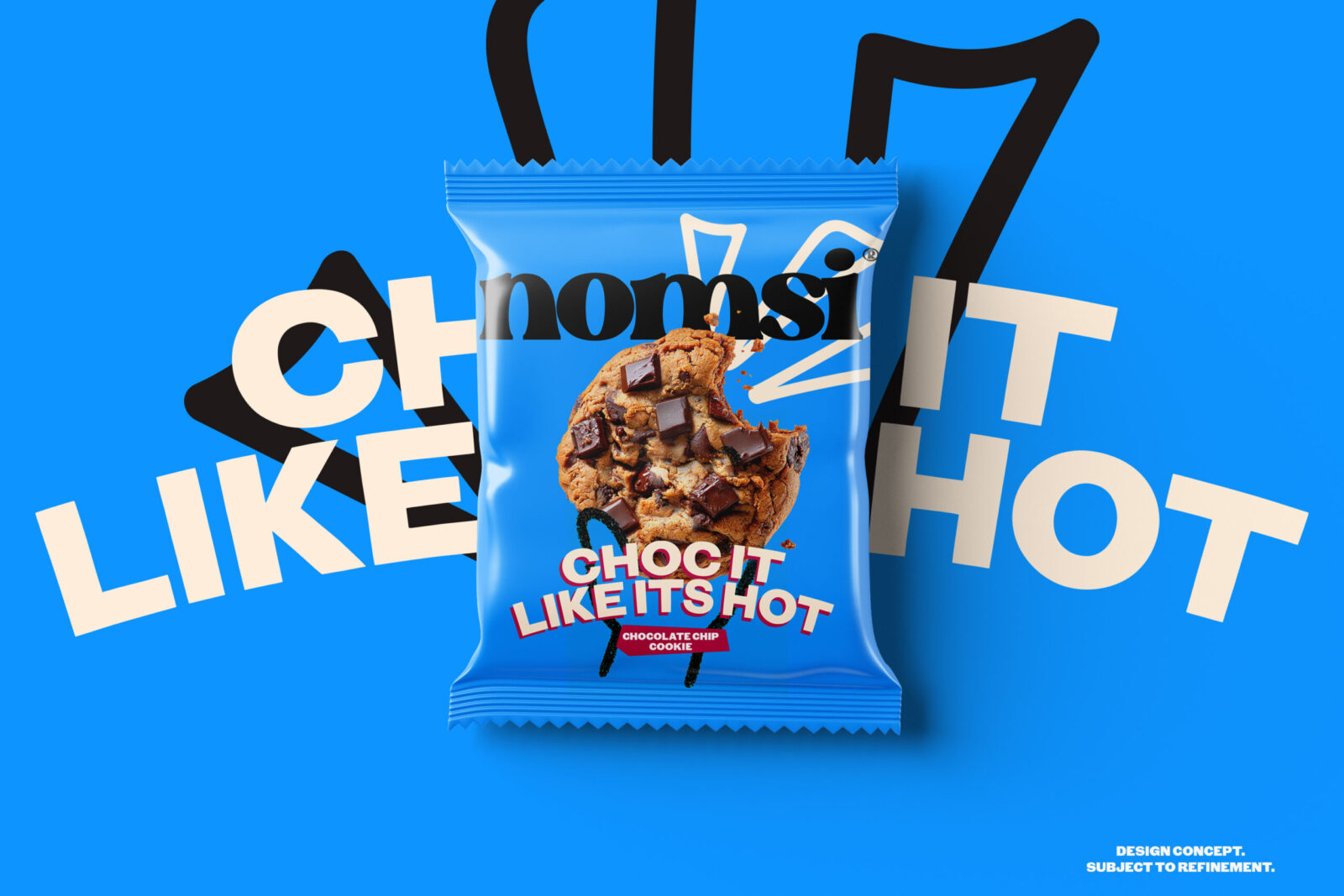 Nomsi began with a deceptively simple brief: create the name and brand for a cookie designed for the health-conscious mind. A product that is good for you, but doesn’t feel worthy or boring. A cookie that embraces balance. A cookie that’s fun, bold, and genuinely enjoyable.