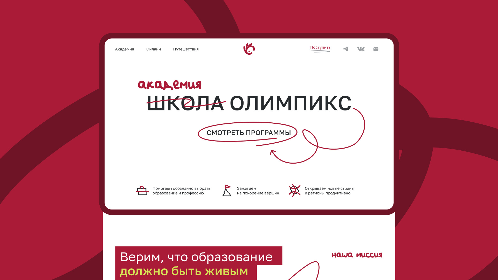 BWDS Studio developed branding and digital experience for OLYMPICS — an educational ecosystem where traditional learning meets modern approaches. The project combines an offline academy, an online platform, and educational trips, creating an environment that inspires teenagers while giving confidence to their parents.