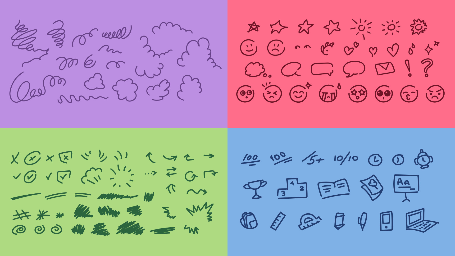 On top of this structure, a layer of handwritten elements — notes, sketches, arrows, and spontaneous marks — adds energy and engagement for younger users.