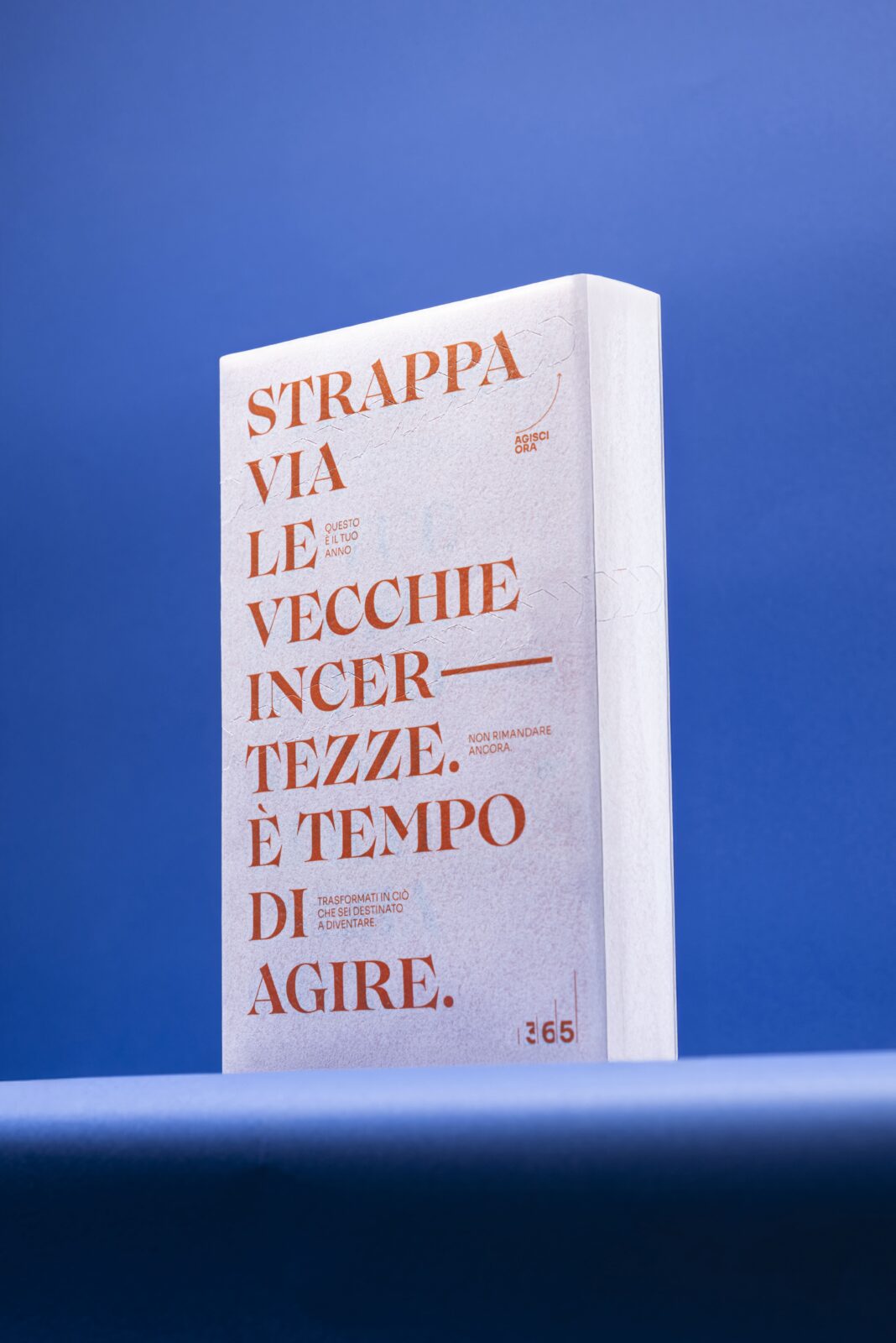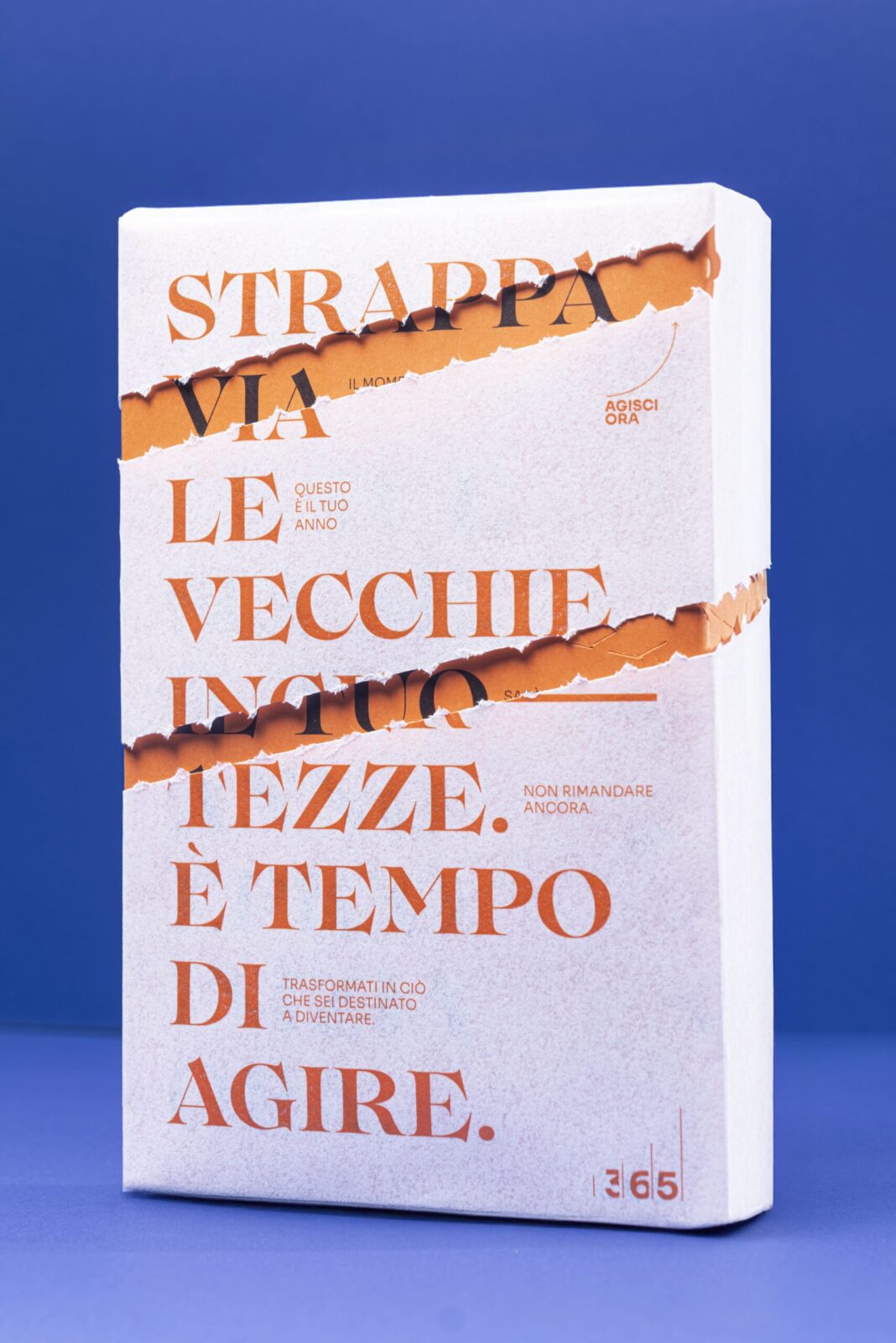 The project revolves around the idea of travel as a metaphor for personal transformation. The experience begins with a simple yet symbolic gesture: tearing open the wrapping that protects the quarterly agenda.