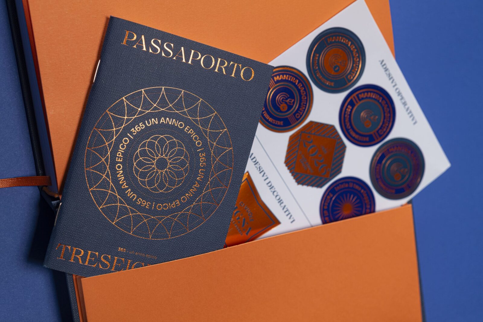 Alongside the Journal, the kit introduces the Epic Passport, designed as a personal travel document. Just like the Journal, the passport is wrapped in Fedrigoni Imitlin Blue Night E/R05 Tela 120g, enhanced by a hot-foil stamp (1+0) with Kurz Luxor 404, giving it an institutional, precious feel.