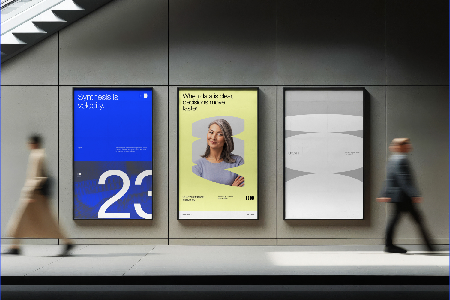 The core challenge was not visual differentiation alone, but conceptual clarity: to design a brand that could express how fragmented data becomes trustworthy, decision-ready intelligence. In an industry dominated by abstract visuals, technical noise, and AI-first rhetoric, ORSYN needed an identity that felt structured, credible, and calm, one that reflects intelligence as something engineered over time, not instantly extracted.