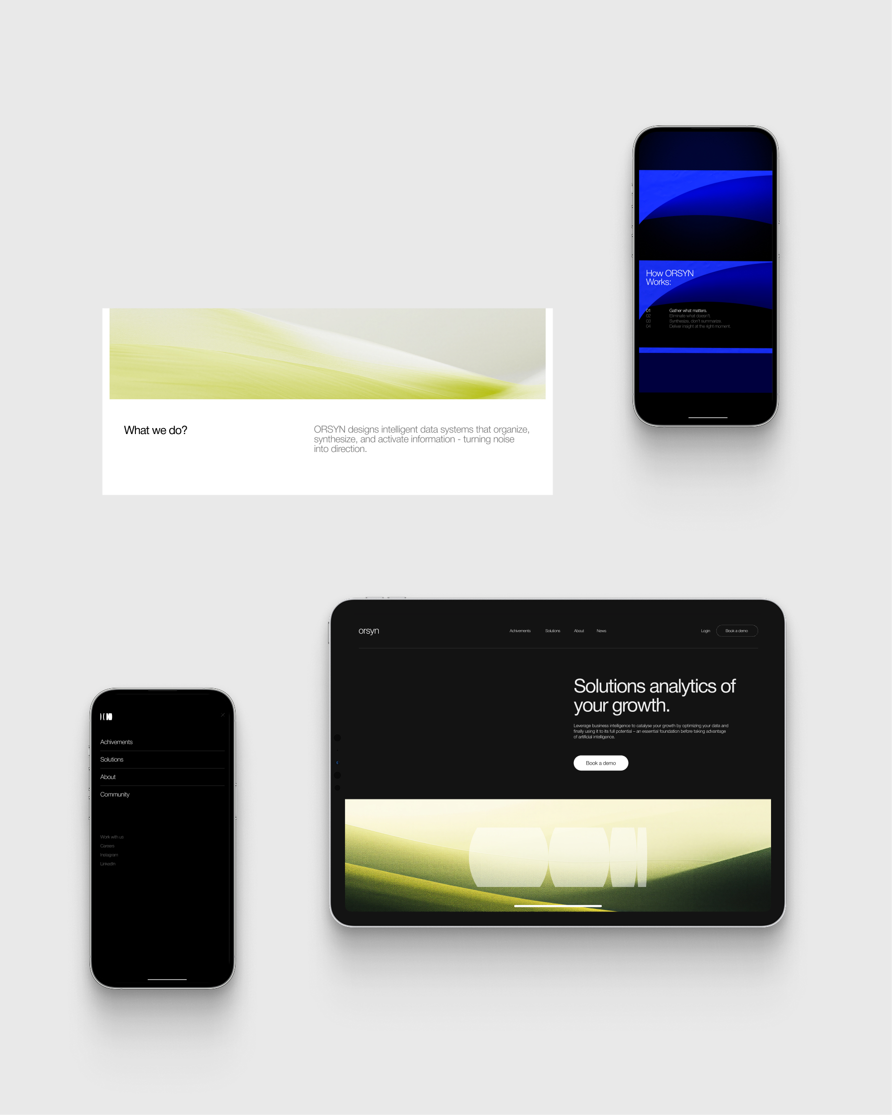 ORSYN is a full-scale brand identity and digital system developed for a data intelligence company operating in complex, enterprise-level environments.
