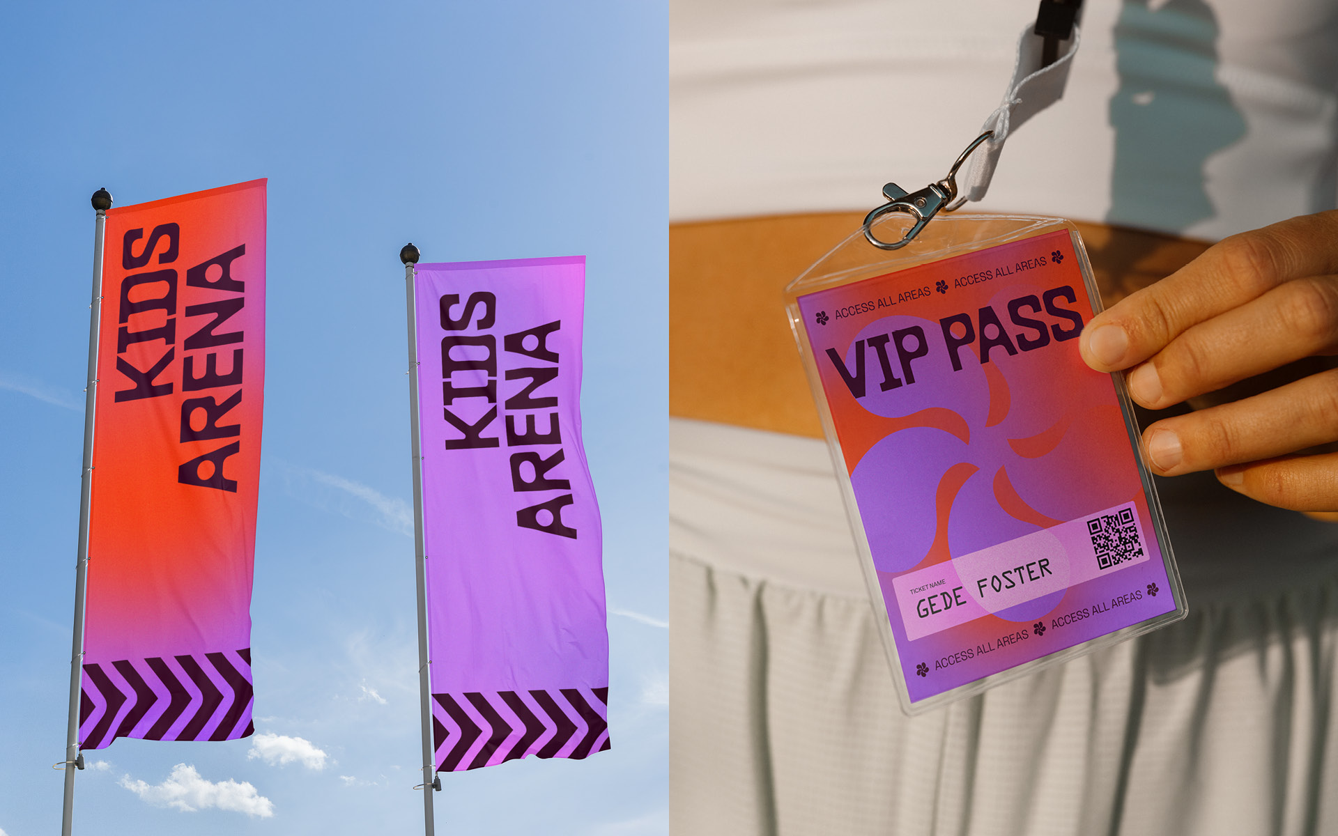 The colour palette mirrors the festival’s natural transition from day to night, from wellness and fitness to music. Drawing inspiration from the sky at dawn and dusk, we developed a living gradient that evokes energy, giving the team the freedom to adapt and evolve the look across an extensive range of assets.