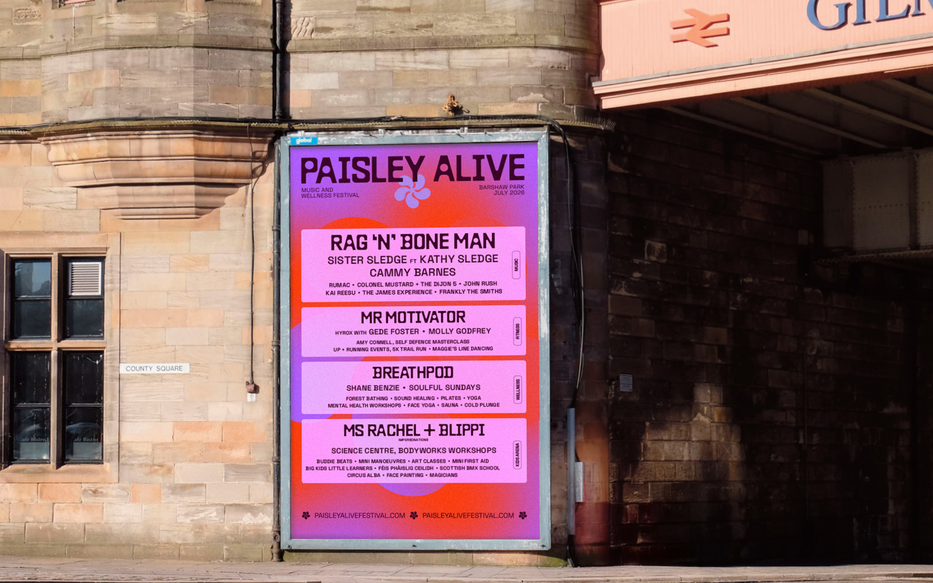 Paisley Alive is no ordinary music festival. Our challenge was to develop an inclusive concept that embodies not just live music but wellness and fitness for a wide demographic. Giving the core brand a confident, new energy while leaving room to evolve as the festival grows.