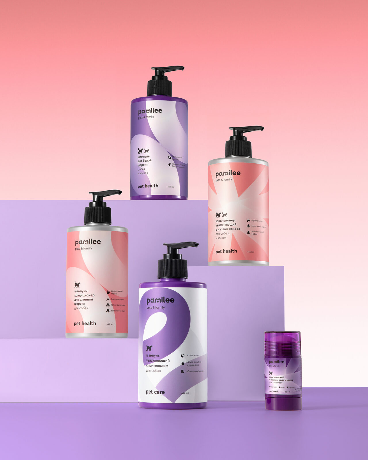 Pamilee is a pet care brand created to shift the visual language of grooming products for home use toward a cleaner, more emotionally intelligent direction. Formerly known as “ProAnimal”, the brand underwent a full rebranding after trademark registration for the original name proved impossible. This led to the creation of a new name “pamilee”, visual identity, and complete packaging overhaul.