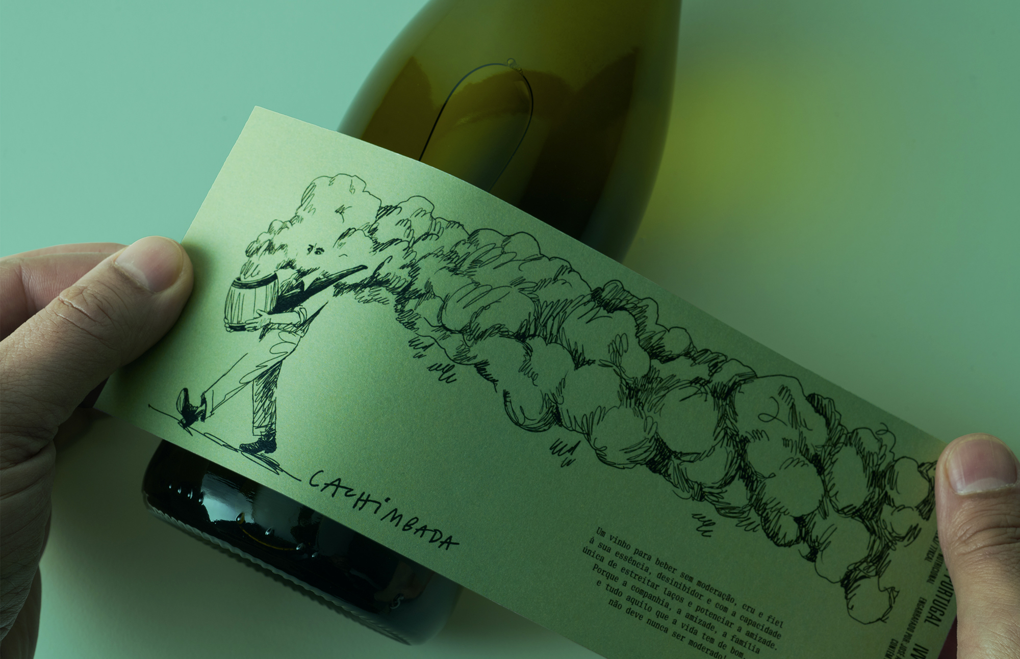 In Portuguese, the word pipa carries a beautiful dual meaning: it refers both to a wine cask and to the bowl of a pipe. This linguistic coincidence becomes the conceptual core of Cachimbada’s packaging. Here, the wine cask transforms into the father’s pipe, merging wine and memory into a single symbolic gesture. From this pipe, a delicate trail of smoke gently emerges, wrapping itself around the bottle as if protecting it.