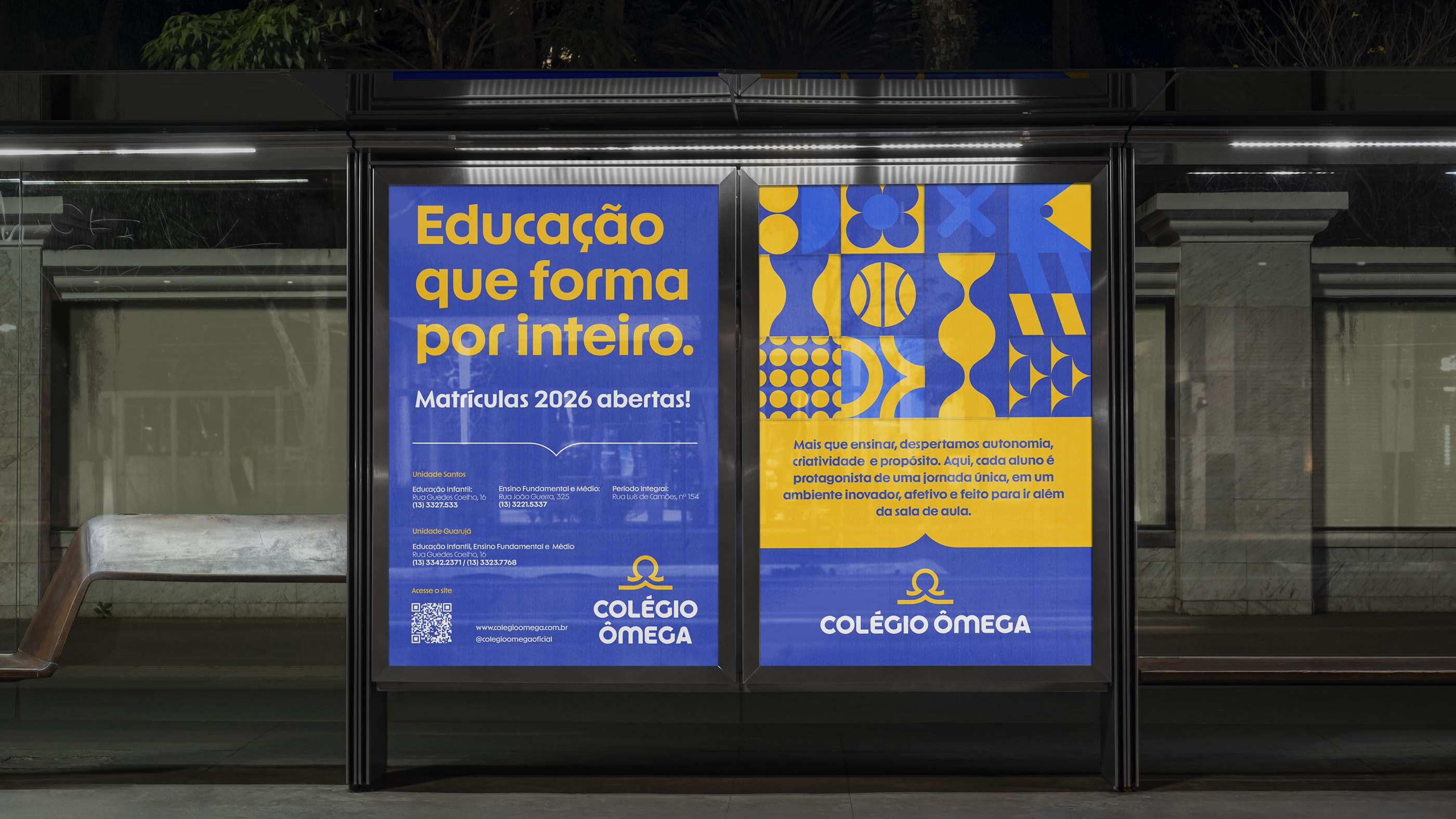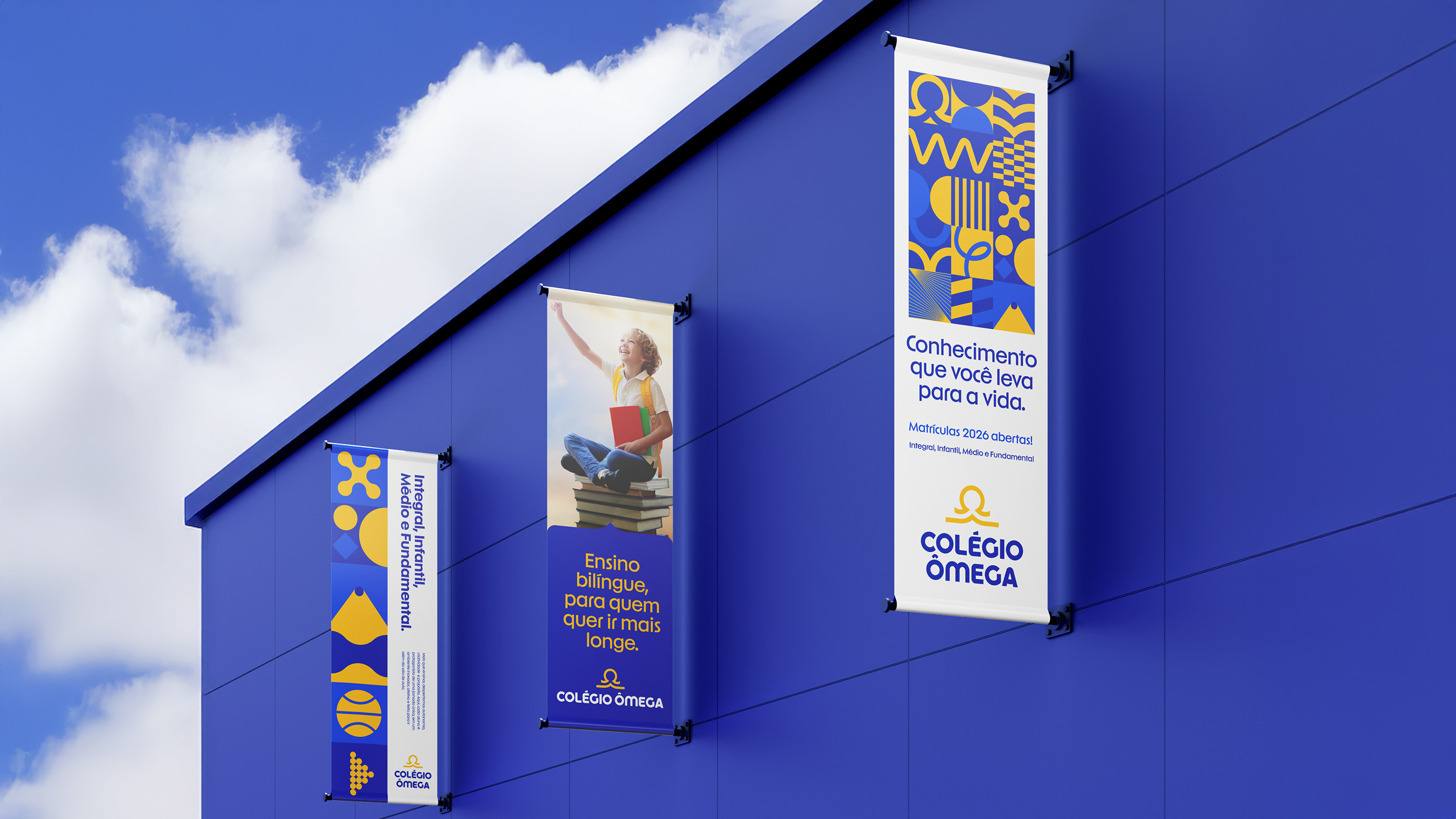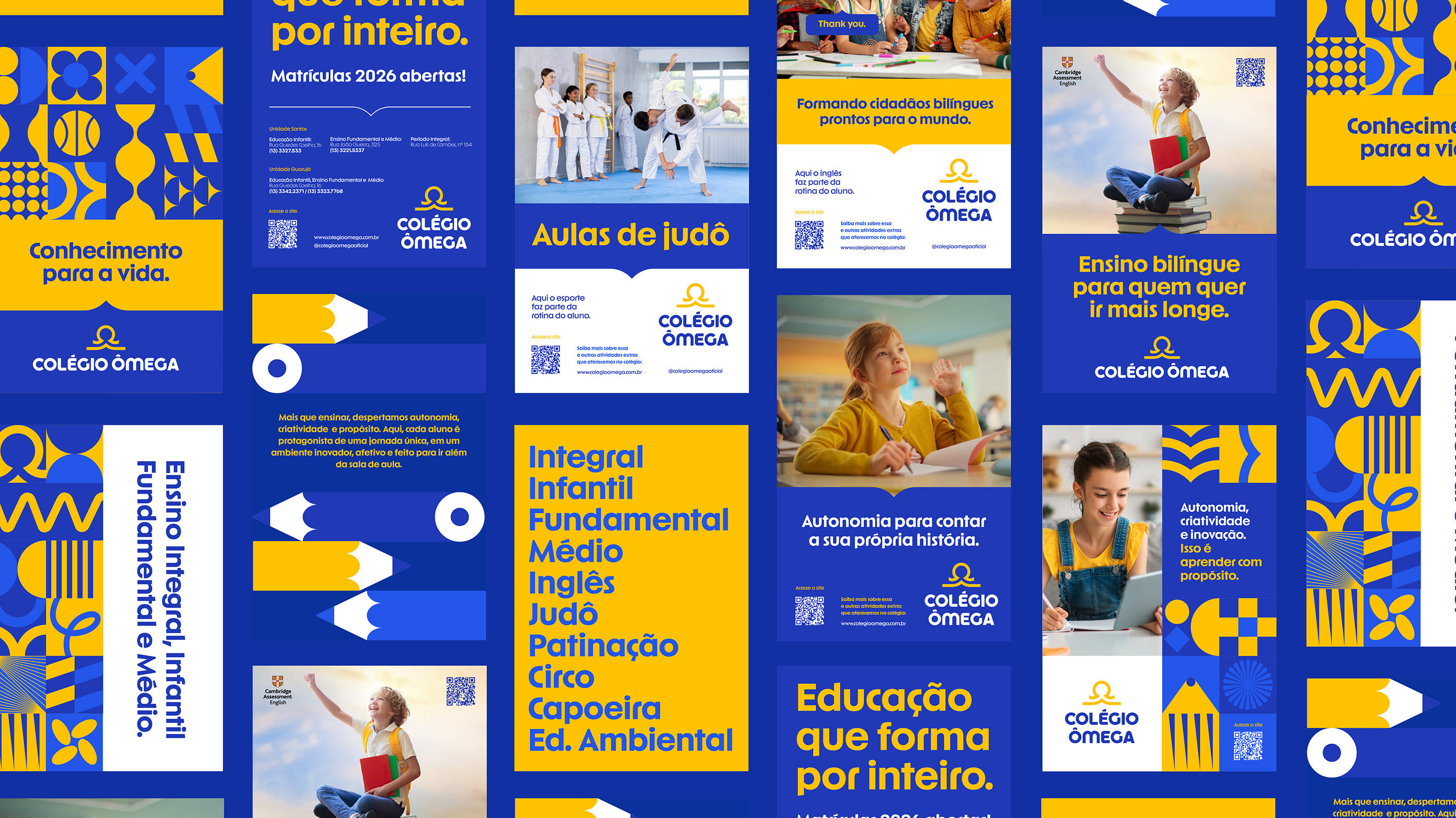 With this new identity, Colégio Ômega now communicates with greater clarity, purpose, and personality. Its brand has gained a voice, expression, and coherence, a true reflection of its mission: to add value to people’s education and lives. The new visual language is both emotional and rational, capable of inspiring hearts while preserving the credibility and strength that an educational institution must convey.