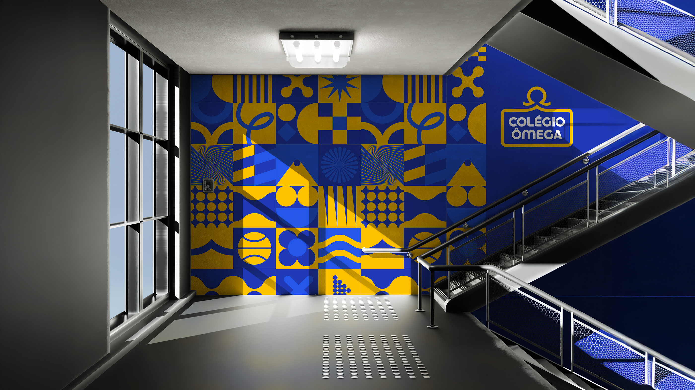 More than creating a new visual identity, the project required a deep dive into the institution’s culture and its bilingual, interactionist educational approach, which places the student at the center of the learning process. During our immersion, we discovered that Colégio Ômega is built on living connections between people, ideas, and experiences. That insight became the foundation for a creative ecosystem inspired by mosaics: shapes that evolve, connect, and reinvent themselves, just like the act of learning.