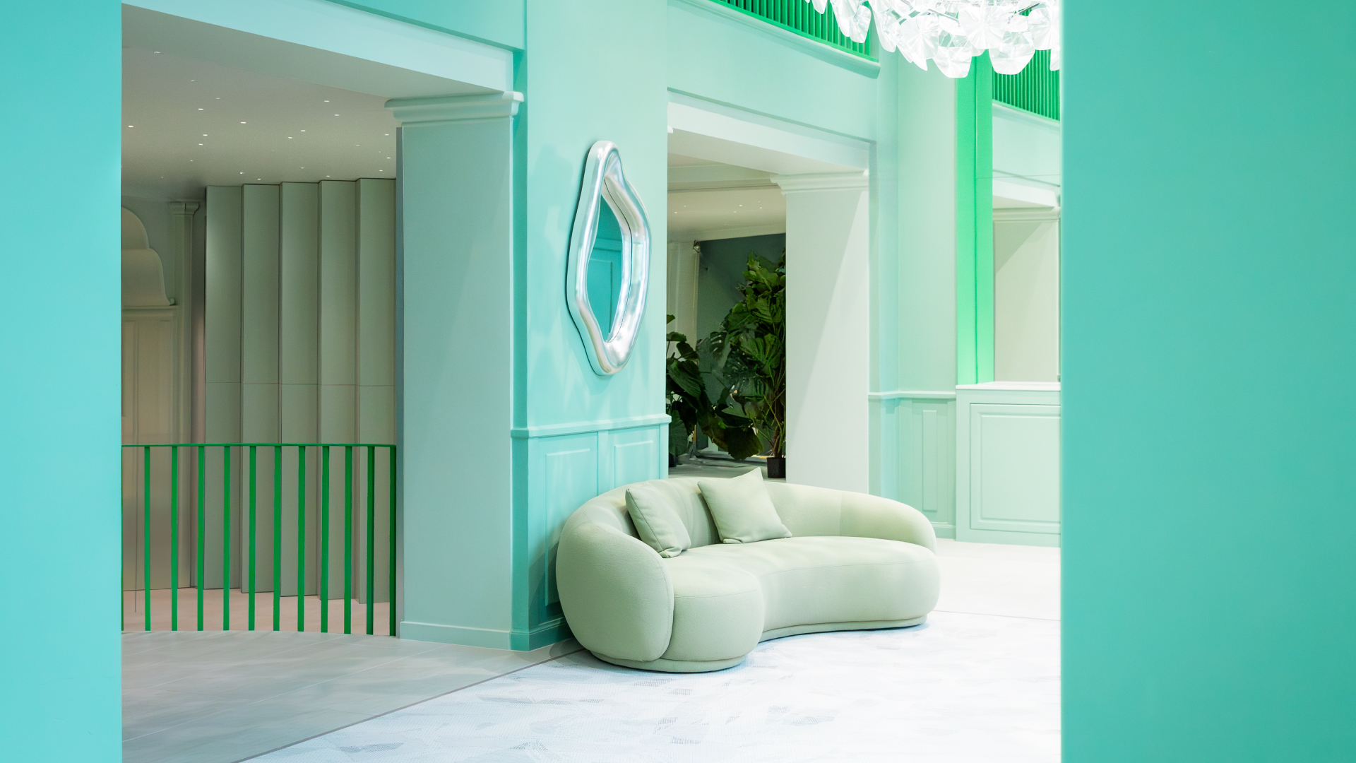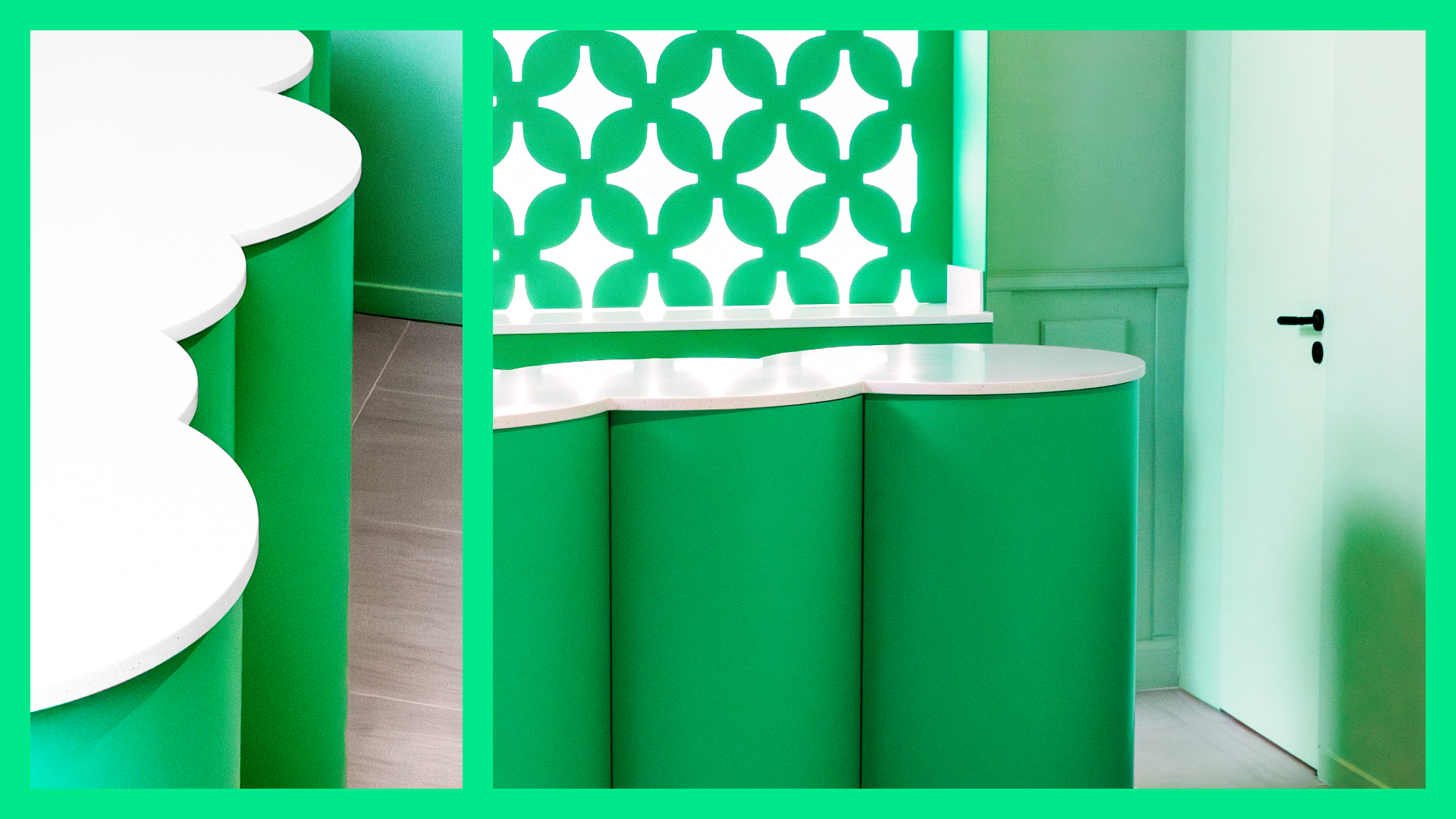 Friendly, stylish hosts replace formal receptionists, welcoming visitors into a warm, spa-like atmosphere. Gone is the sterile waiting room; in its place, a dynamic lounge complete with a healthy shot bar, DJ stand, and art gallery. The dramatic ceiling height gains breathtaking proportions through a mint-fresh colour palette, high-end custom panels and detailing. Separated locker rooms for all patients’ personal belongings creates a calm and safe environment. Elegant tooth-brushing stations enhance the caring experience. Every surface, material, and colour meticulously chosen to challenge the clinical norm – conveying warmth, professionalism, and ambition.