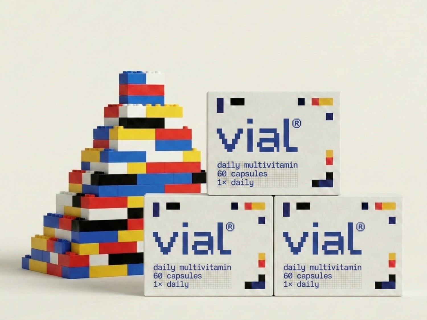 Vial positions itself against the two dominant modes of nutrition branding: pharmaceutical sterility and aspirational wellness culture. One treats you like a patient. The other treats you like a project. Vial does neither. It’s wellness as everyday architecture. As ritual. As something composed quietly, consistently, over time. Not alarm bell. Not lifestyle aspiration. Just honest structure you build for yourself, one block at a time.
