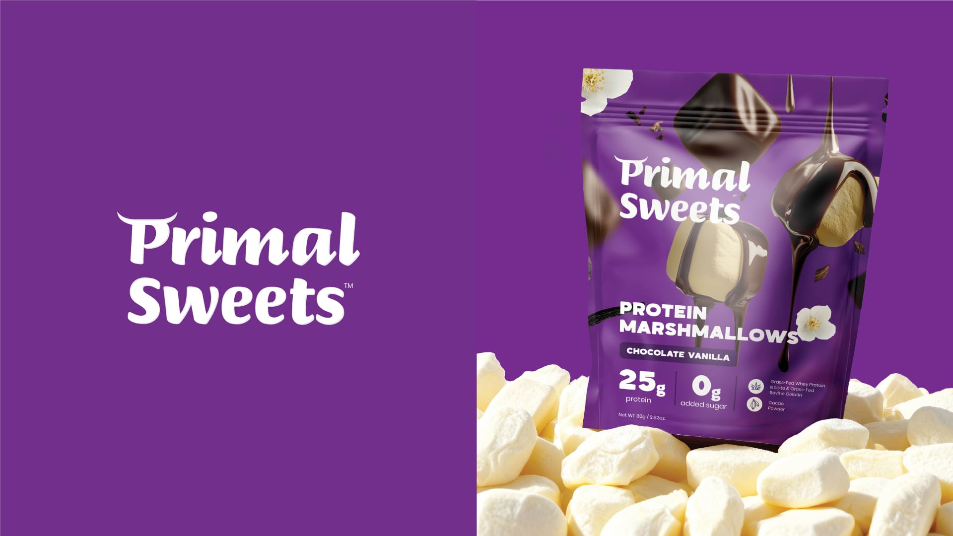 Primal Sweets Protein Marshmallows Branding and Packaging Design by Bemain Studio