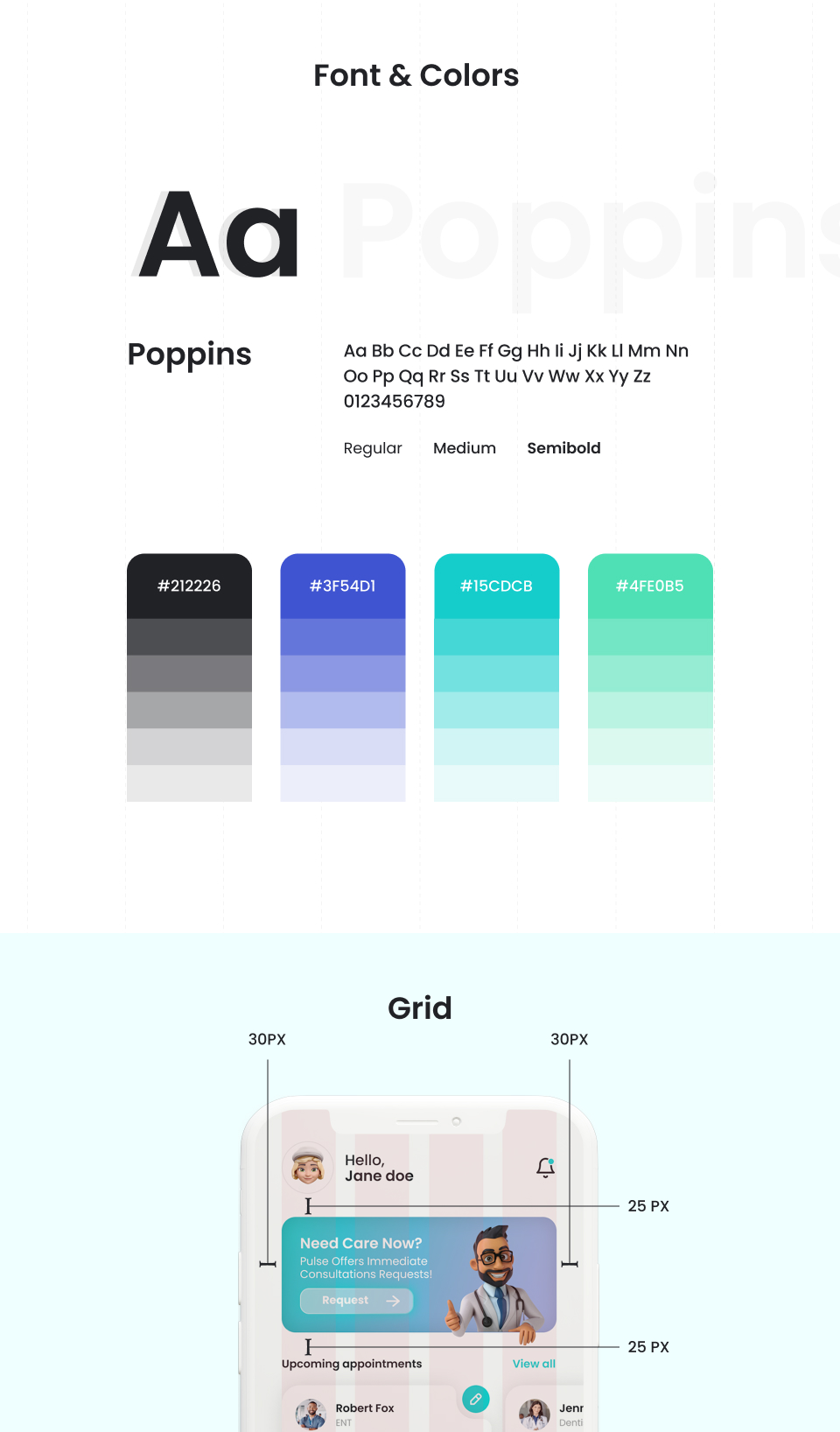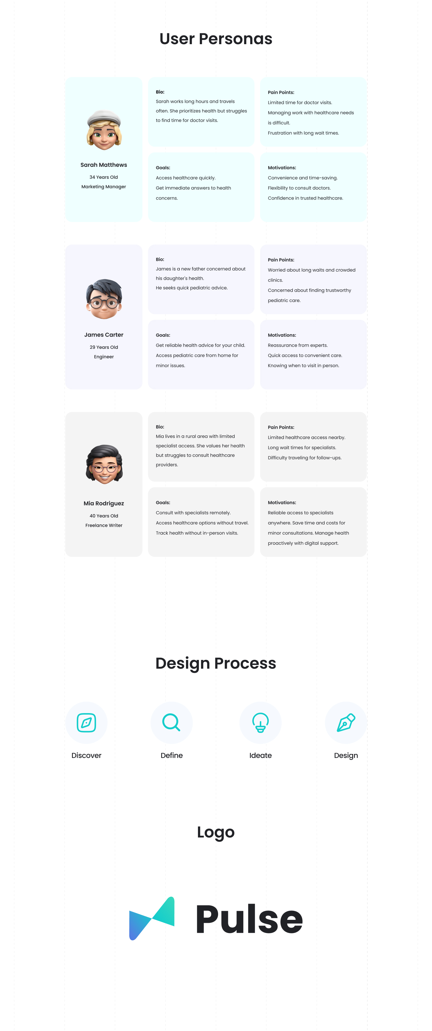 From a design perspective, Pulse balances professionalism with warmth. The visual identity uses calm colors and clear typography to instill confidence while avoiding the intimidating feel often associated with medical platforms. Accessibility standards, including scalable text and clear iconography, were integrated to ensure inclusivity.
