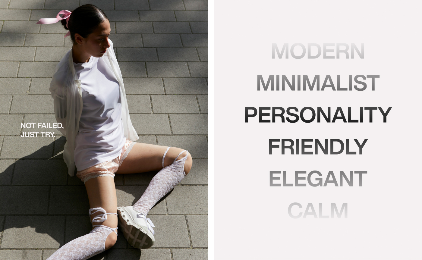 Typography plays a significant role in grounding the brand’s minimal yet expressive personality.