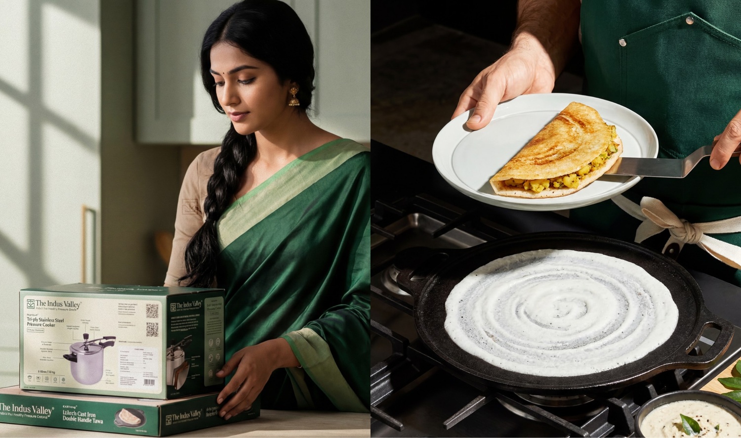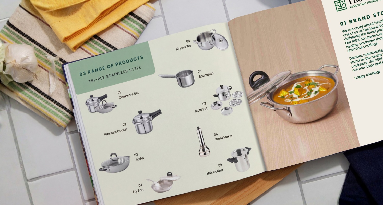 Indus Valley is a health-focused cookware brand from Tamil Nadu, trusted by Indian households for safe, chemical-free cooking. They manufacture a wide range of products including pressure cookers, kadais, stainless steel and cast iron cookware, all built around one core promise: healthier, chemical-free cooking for everyday Indian kitchens.